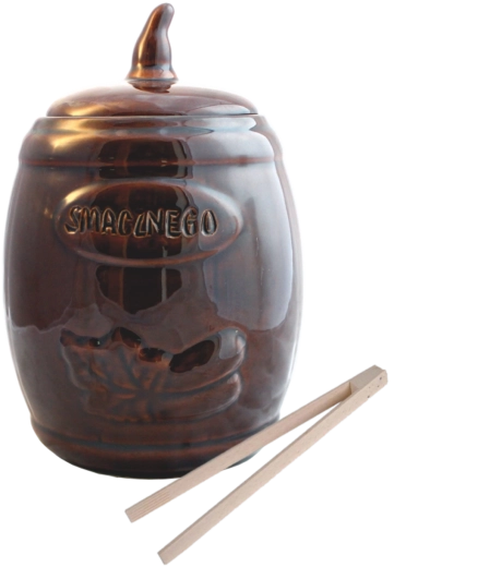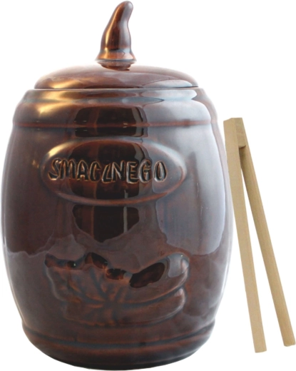 Praktische keramische pot met een inhoud van 3,5 l, ideaal voor het thuis fermenteren en langdurig bewaren van augurken en zuurkool. Gemaakt van niet-giftig geglazuurd steengoed dat zuur‑bestendig is, dat de smaak niet beïnvloedt en zorgt voor veilige voedselopslag. Dankzij de uitstekende isolerende eigenschappen helpt hij een stabiele temperatuur voor een juiste fermentatie te behouden. In de verpakking zitten houten tangen voor hygiënisch uitnemen.