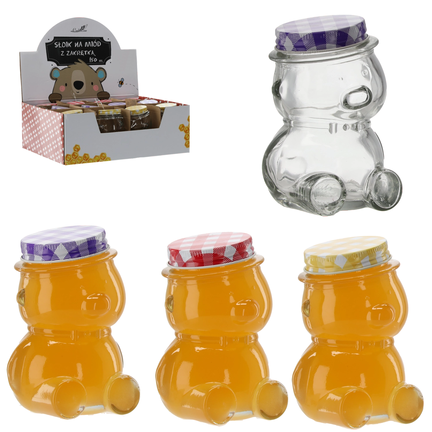 Schattig potje in de vorm van een beer met een inhoud van 150 ml, ideaal voor honing, jam, kruiden en kleine etenswaren. Dankzij het goed afsluitende schroefdeksel blijft de inhoud langer vers en is het zowel geschikt voor thuisgebruik als voor presentatie in de verkoop. Verkrijgbaar met deksels in verschillende kleuren voor een eenvoudige inhoudsherkenning.