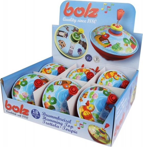 - Eenvoudige bediening – trek de hendel iets omhoog en druk hem in; de tol gaat draaien en geeft een karakteristiek geluid.