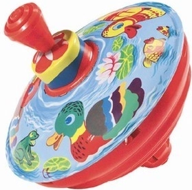 Een kleurrijke tol met een motief van eendjes in de vijver die kleine kinderen plezier geeft en hun vaardigheden stimuleert. Door simpelweg de hendel in te drukken gaat de tol draaien en maakt hij een typisch geluid. Het speelgoed ontwikkelt de fijne motoriek, coördinatie en voldoet aan de Europese veiligheidsnormen.