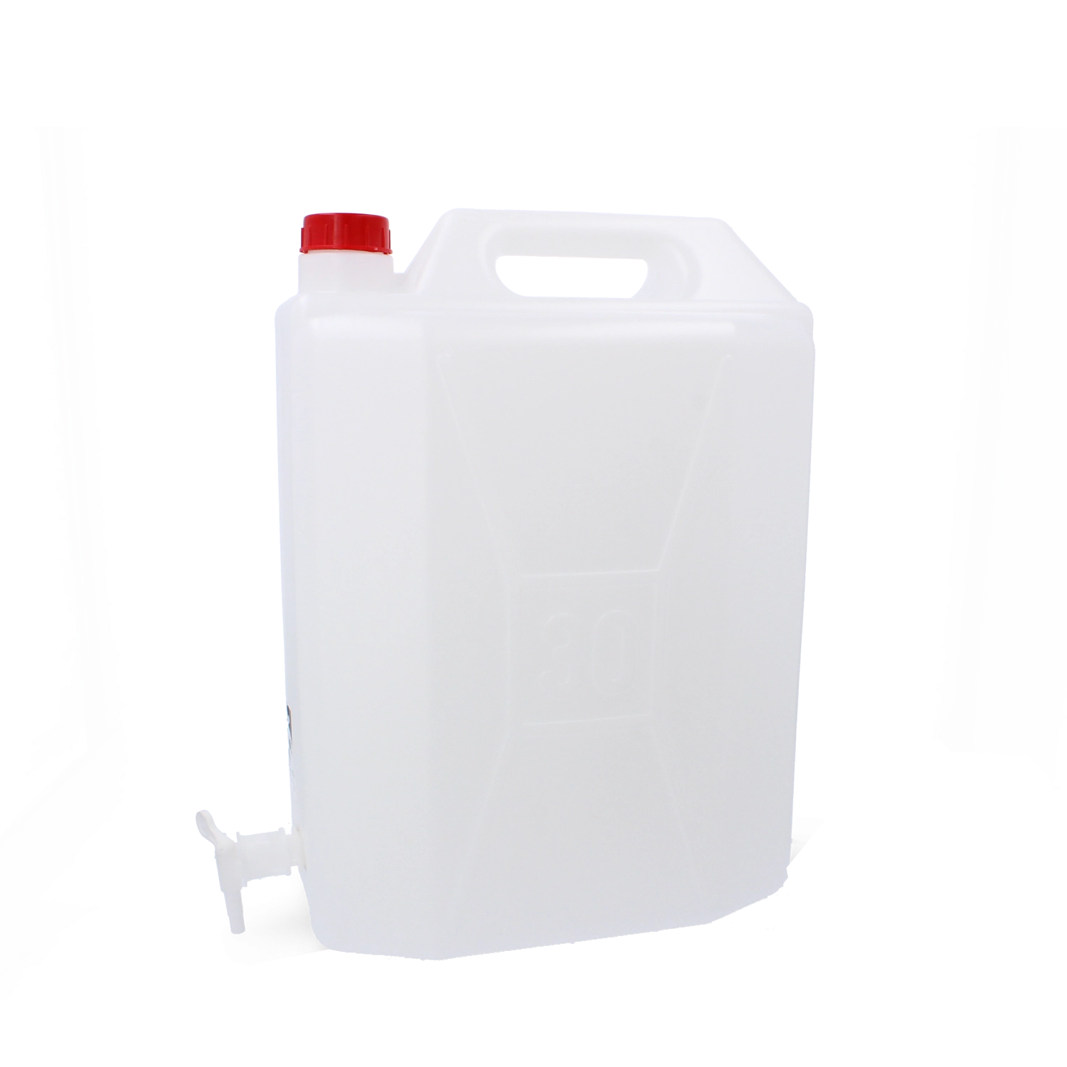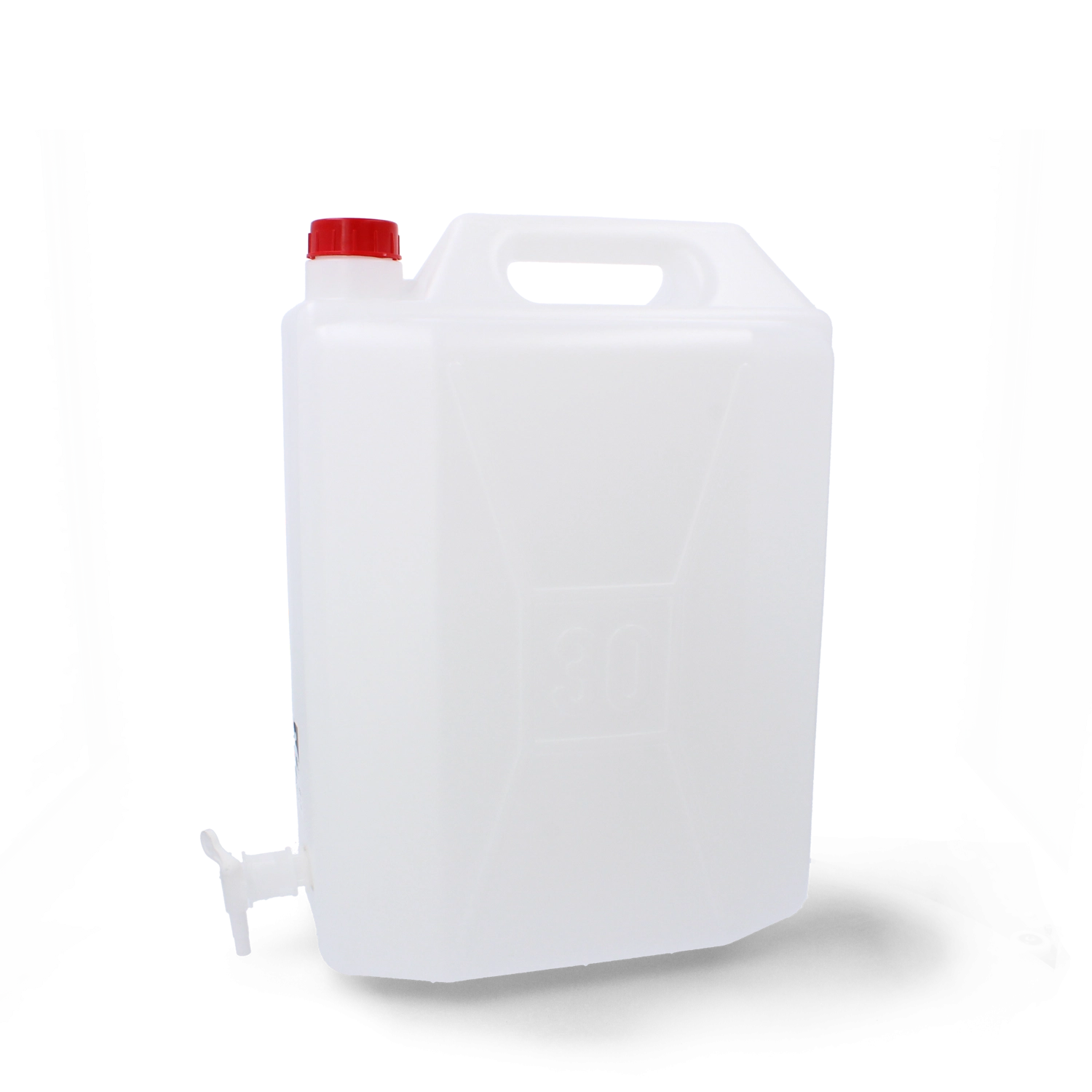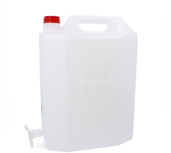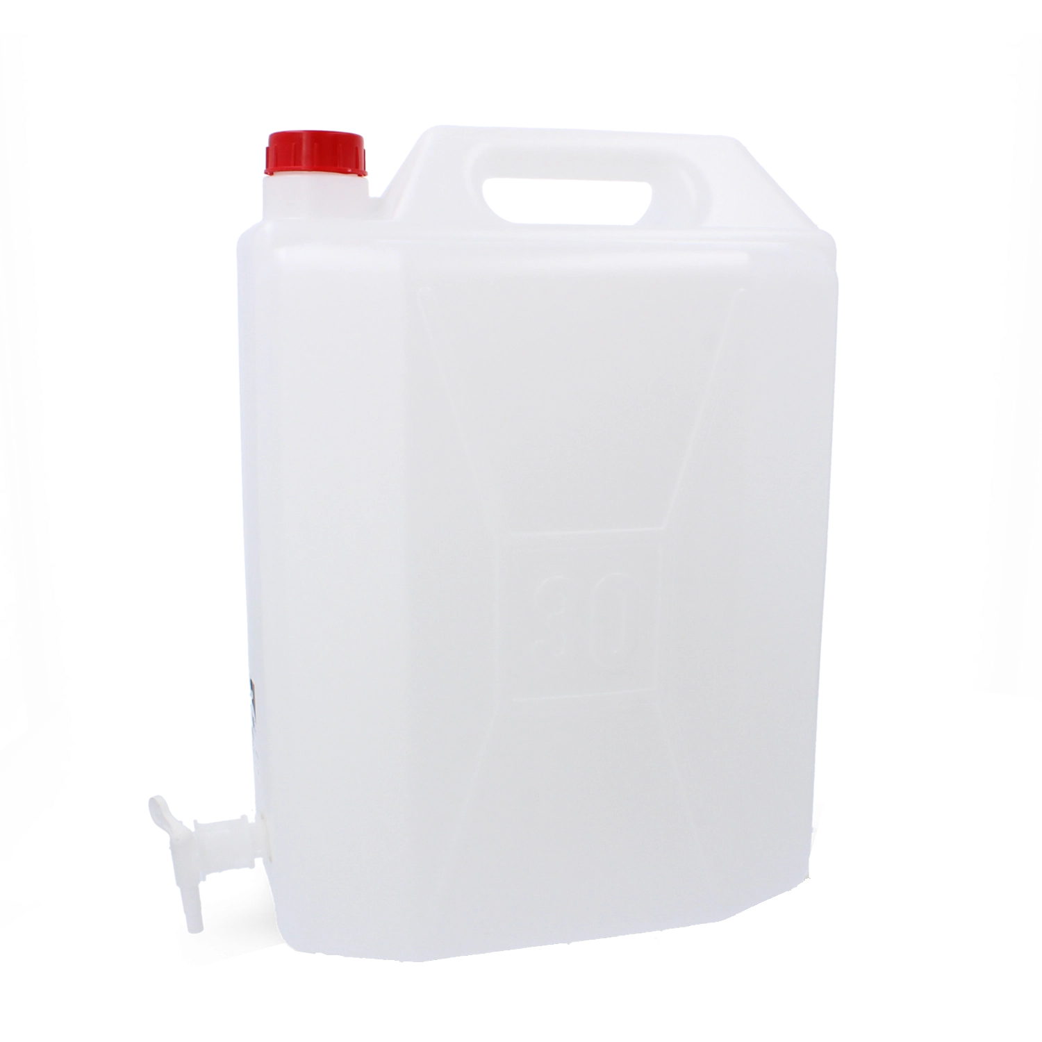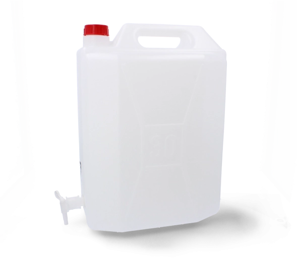 Praktische kunststof jerrycan met een inhoud van 20 liter en een geïntegreerd kraantje voor nauwkeurige dosering en gemakkelijk aftappen van vloeistoffen. Ideaal voor het opslag en transport van water of andere vloeistoffen onderweg, in de werkplaats en in huis.