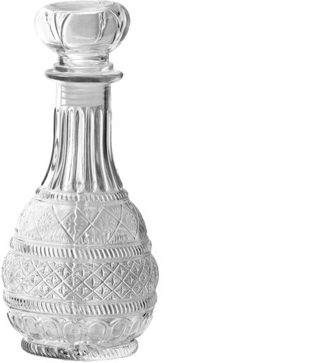 Deze versierde karaf van hoogwaardig, dikwandig glas is ontworpen voor het stijlvol serveren van huisgemaakte likeuren, distillaten en wijn. Hij imiteert het uiterlijk van kristal natuurgetrouw, waardoor hij op tafel representatief en luxueus oogt, en tegelijk praktisch is voor dagelijks gebruik.