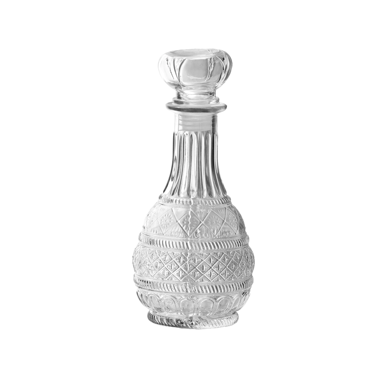Elegante versierde glazen karaf met een inhoud van 500 ml, ideaal voor het serveren van likeuren en wijnen. Gemaakt van dik glas dat kristal natuurgetrouw imiteert en dranken een luxueuze uitstraling geeft. De glazen stop met afdichting behoudt aroma en smaak, terwijl het tijdloze design de tafel een elegante toets geeft. Ook een geweldig idee voor een cadeau voor liefhebbers van kwaliteitsdranken.