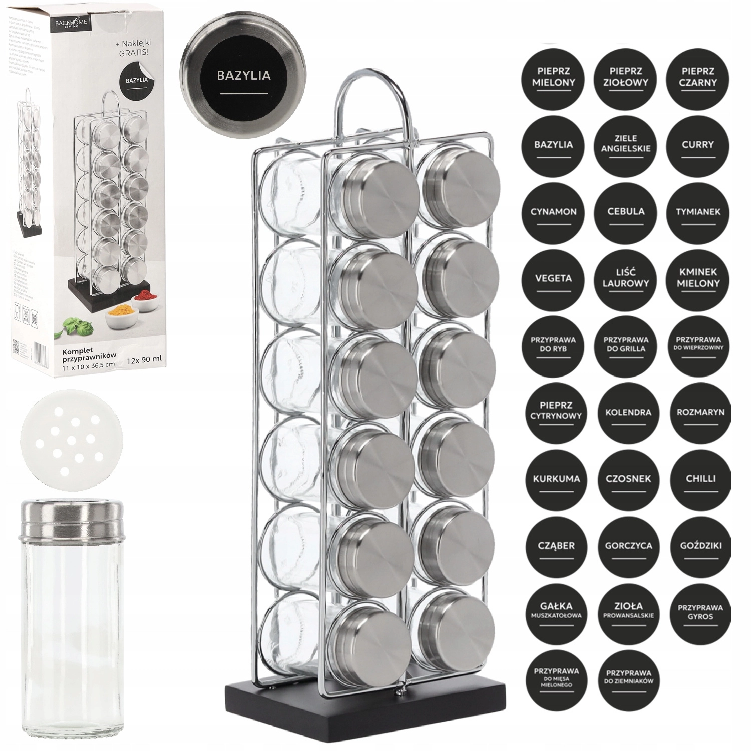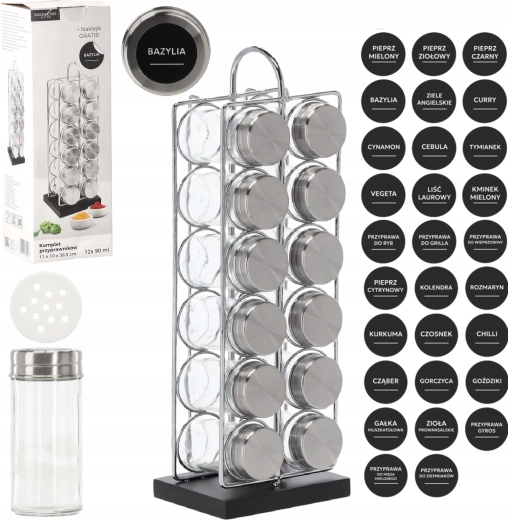 In de set vind je 12 transparante glazen kruidenpotjes met een inhoud van 90 ml en schroefbare roestvrijstalen deksels, die het aroma en de versheid van je kruiden behouden. De praktische plaatsing in 2 kolommen van 6 maakt snel zoeken makkelijk en bespaart ruimte op het aanrecht.