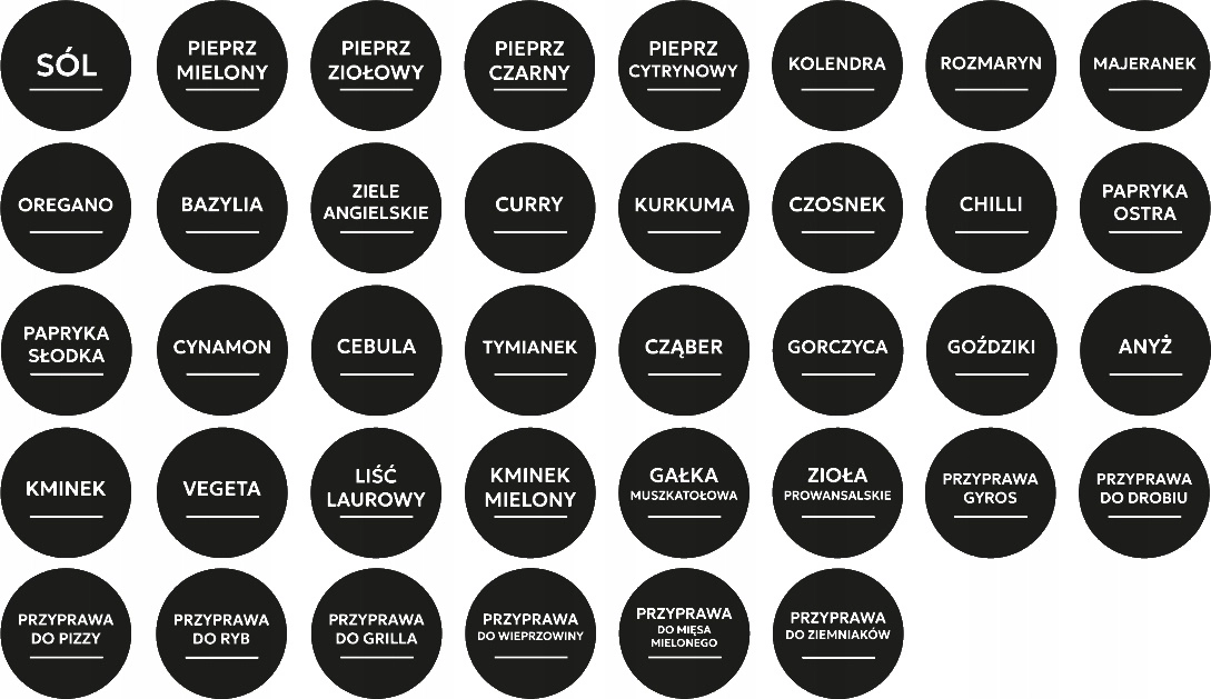 Ook inbegrepen is een set van 38 stickers met de meest voorkomende kruidennamen (bijv. zout, peper, oregano, basilicum, kerrie, kurkuma, zoete/pittige paprika, kaneel, knoflook, tijm enz.), zodat je de set eenvoudig kunt personaliseren en perfect overzicht behoudt.