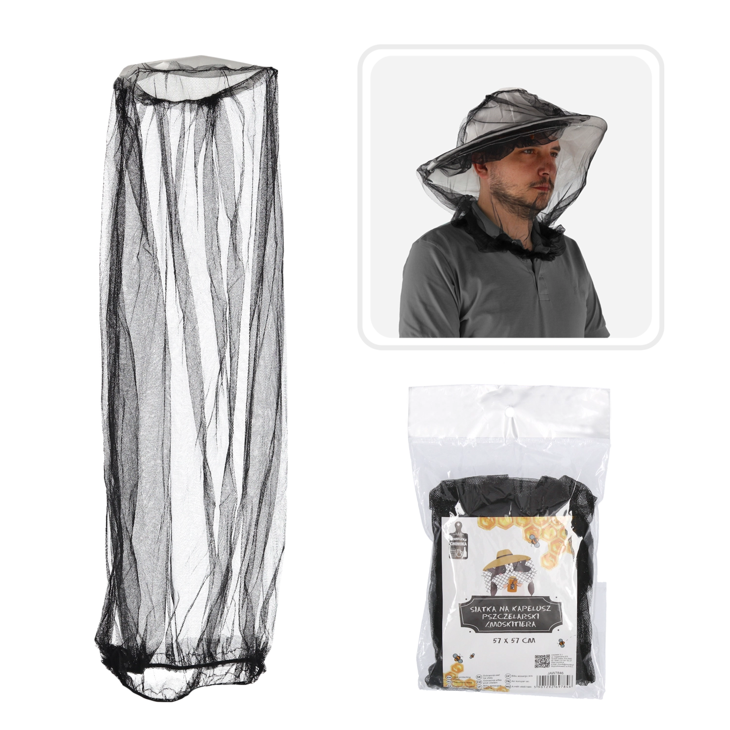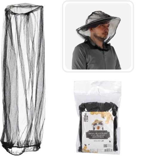 Praktisch muskietennet voor een imkerhoed met afmetingen 57 × 57 cm biedt betrouwbare bescherming tegen bijen, wespen en ander stekend ongedierte. Gemaakt van kwalitatieve materialen, met een fijn gaas voor uitstekende zichtbaarheid en een elastische band voor comfortabel en zeker dragen.