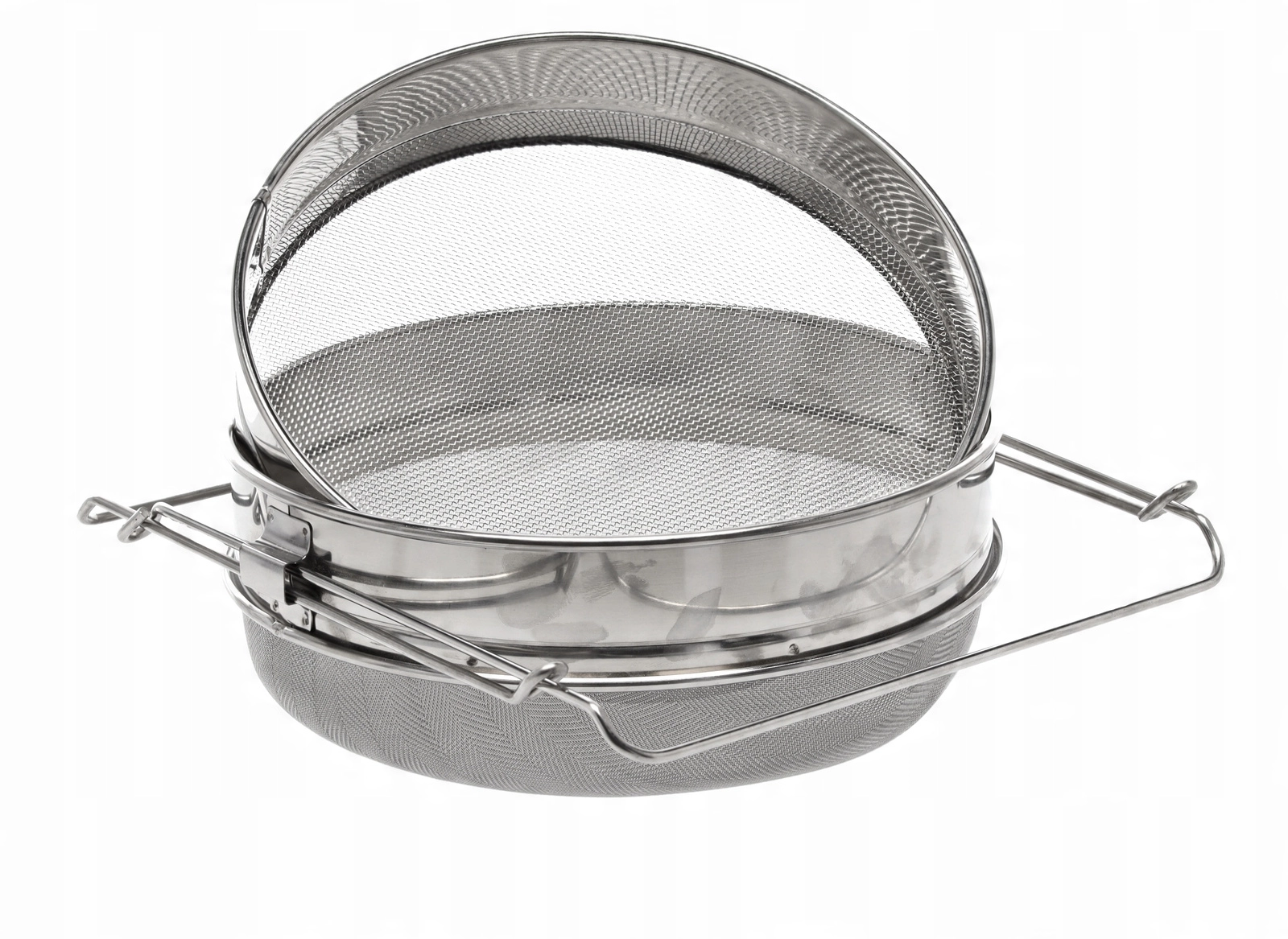 De professionele honingszeef met een diameter van 24 cm is gemaakt van hoogwaardig roestvrij staal, dat hygiënisch is, corrosiebestendig en eenvoudig te onderhouden. Het dubbele filtersysteem met verschillende maasgrootte scheidt efficiënt was en kleine deeltjes, zodat u met heldere en schone honing minimale inspanning behaalt.
