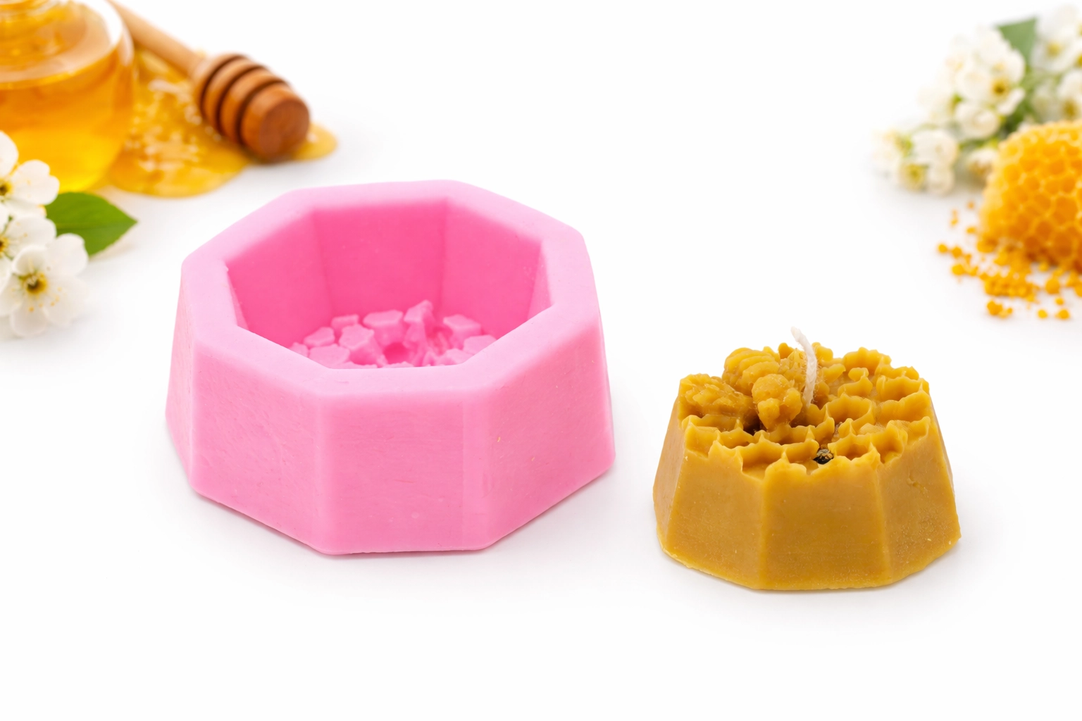 Ontdek het plezier van zelf kaarsen maken met deze duurzame siliconen mal in achthoekige vorm met honingraat en bij. Het materiaal is flexibel, hittebestendig en zorgt voor eenvoudig lossen zonder beschadiging, zelfs bij fijne structuren.