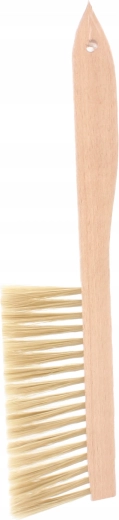 De ergonomische, gladde houten handgreep ligt goed in de hand en dankzij het gat kan de veger eenvoudig worden opgehangen in de werkplaats of bij de kast.