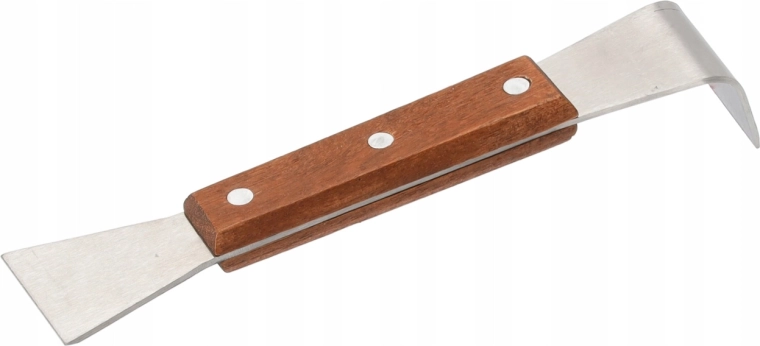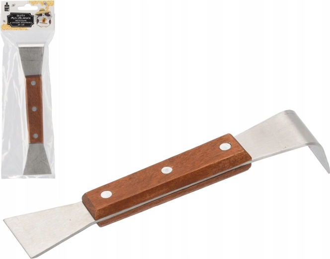 De betrouwbare imkersbeitel met een lengte van 20 cm combineert de sterkte van roestvrij staal met het comfortabele houvast van een houten handgreep. De speciaal gevormde haak en de scherp afgewerkte rand vergemakkelijken het losmaken en optillen van met propolis vastgekleefde ramen, evenals nauwkeurig schrapen en reinigen.