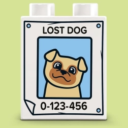 Verhalen creëren - In de set vind je een politiefiguur, een verloren hondje en een poster met een bericht over zijn vermissing. Met deze elementen kunnen kinderen geweldige avontuurlijke verhalen creëren.