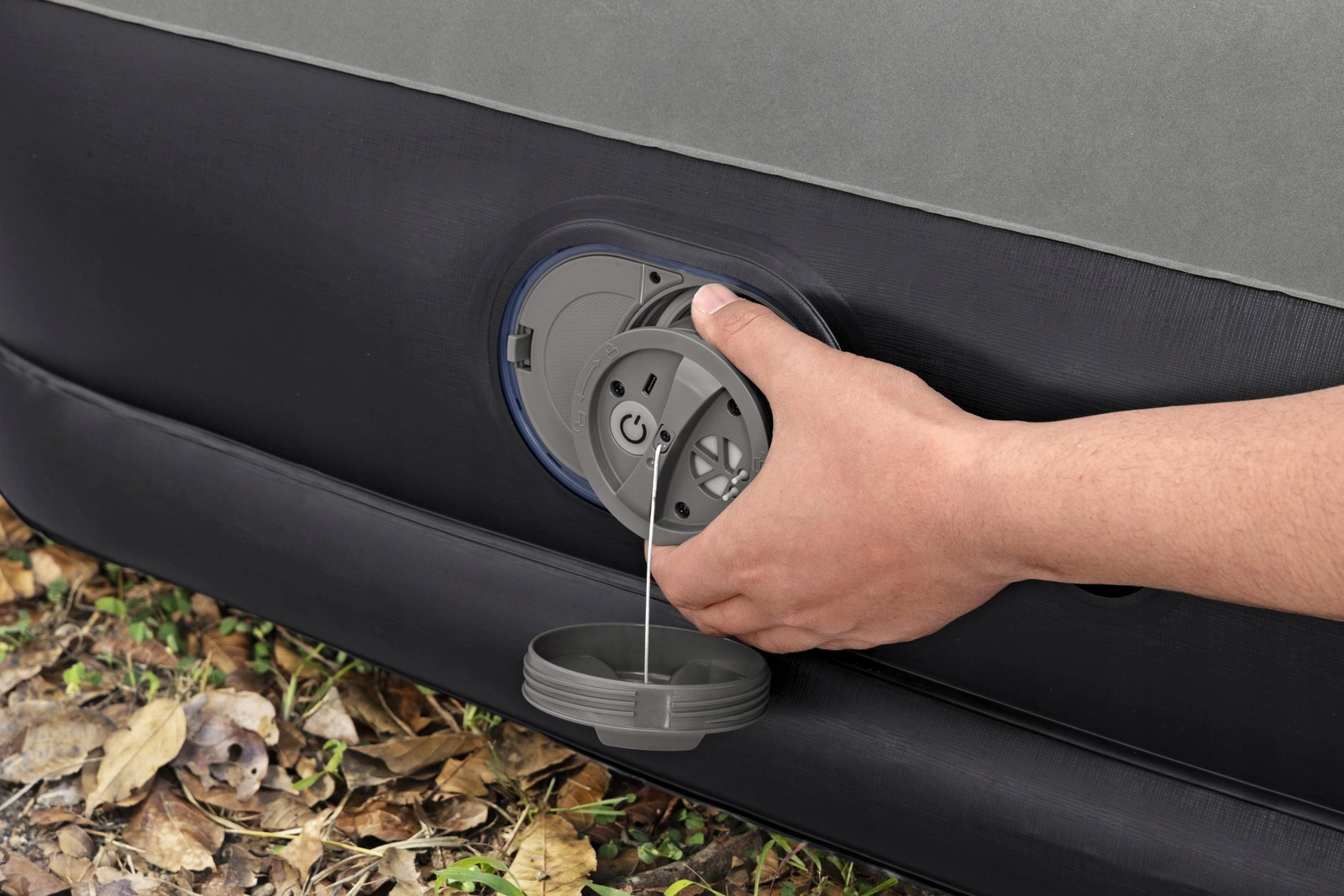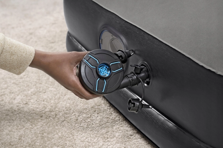 De geïntegreerde AC-pomp 220–240 V blaast het luchtbed in enkele minuten op en maakt ook eenvoudig leeglaten mogelijk. Eenvoudige bediening met één draaischakelaar.