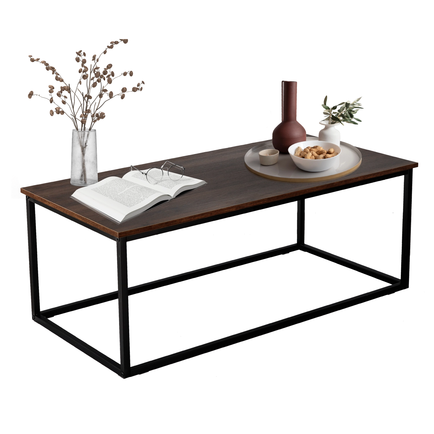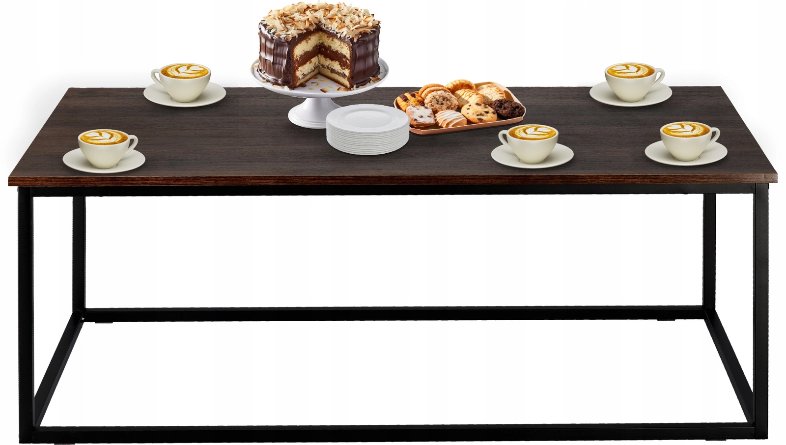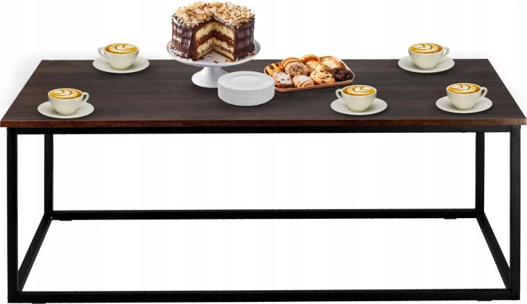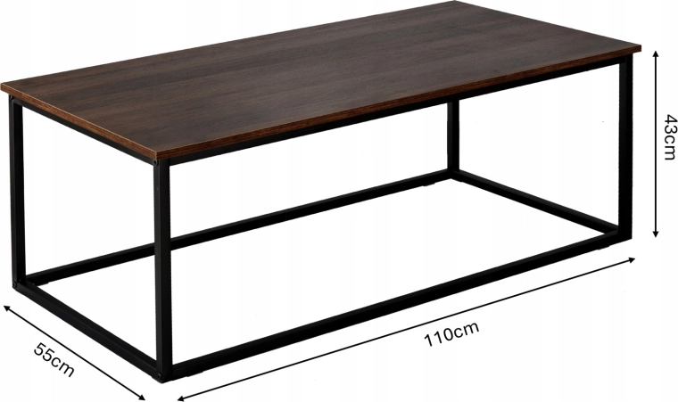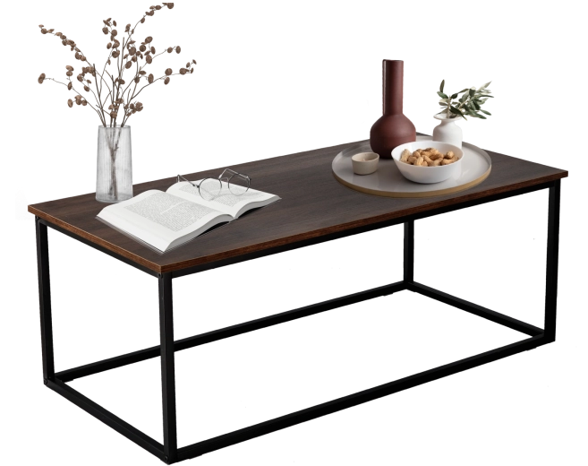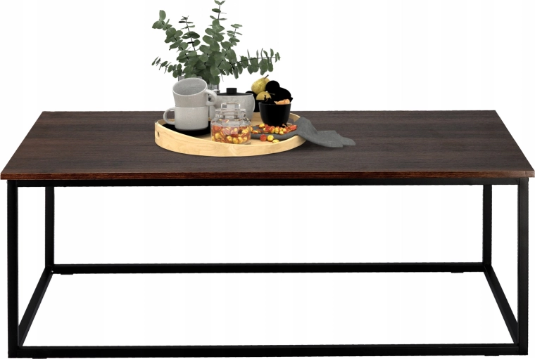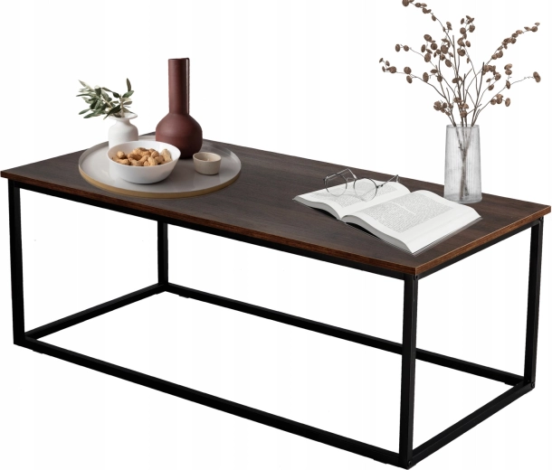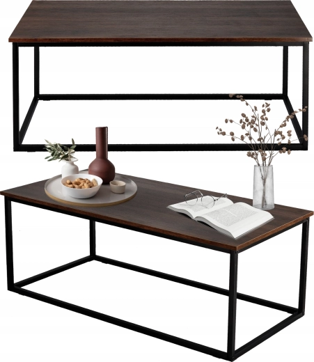 Breng strakke lijnen en industriële elegantie in je interieur. De rechthoekige tafel met een blad in houtimitatie oogt warm en gezellig, terwijl het minimalistische metalen onderstel luchtigheid en duurzaamheid toevoegt. Ideaal voor koffie, boeken en decoraties en een stijlvol middelpunt van je zithoek.