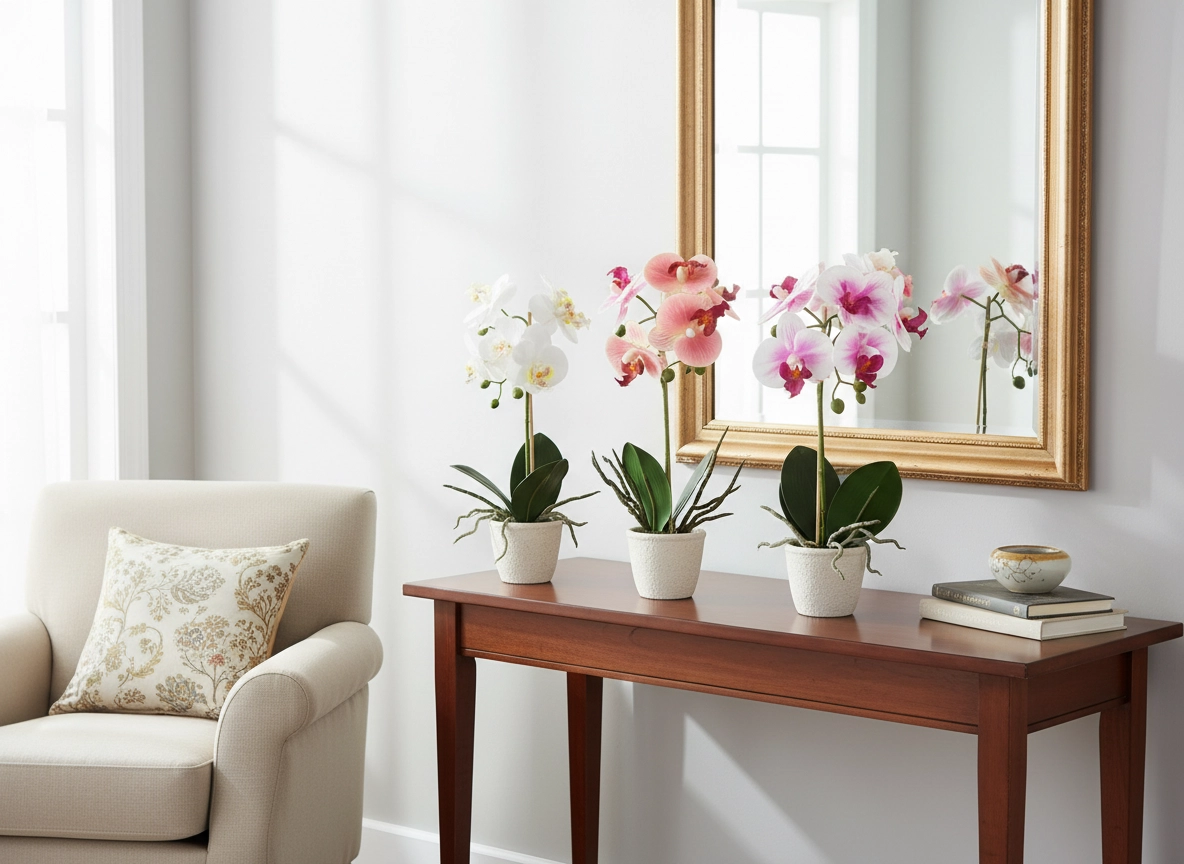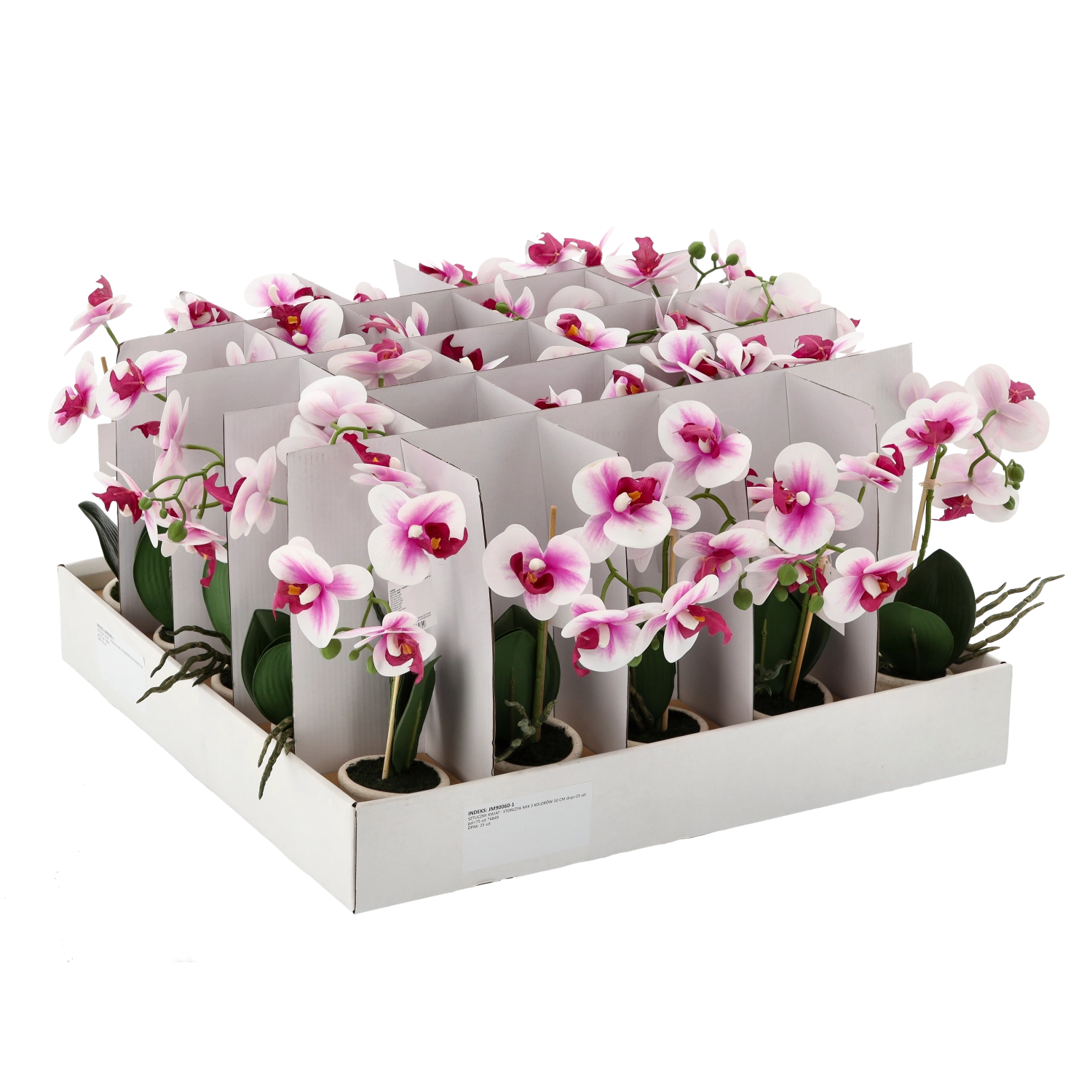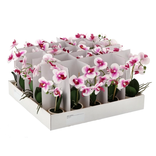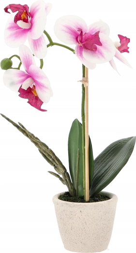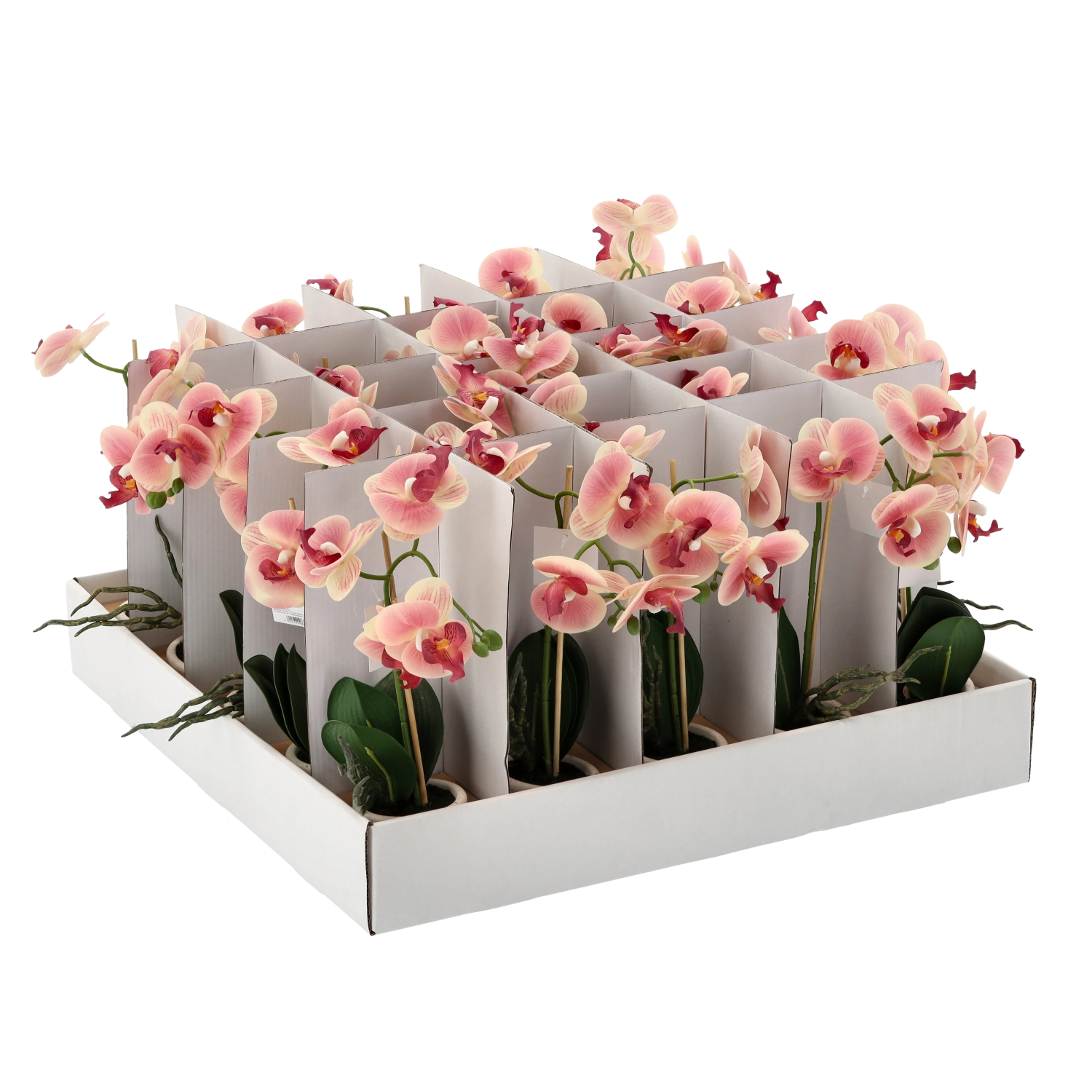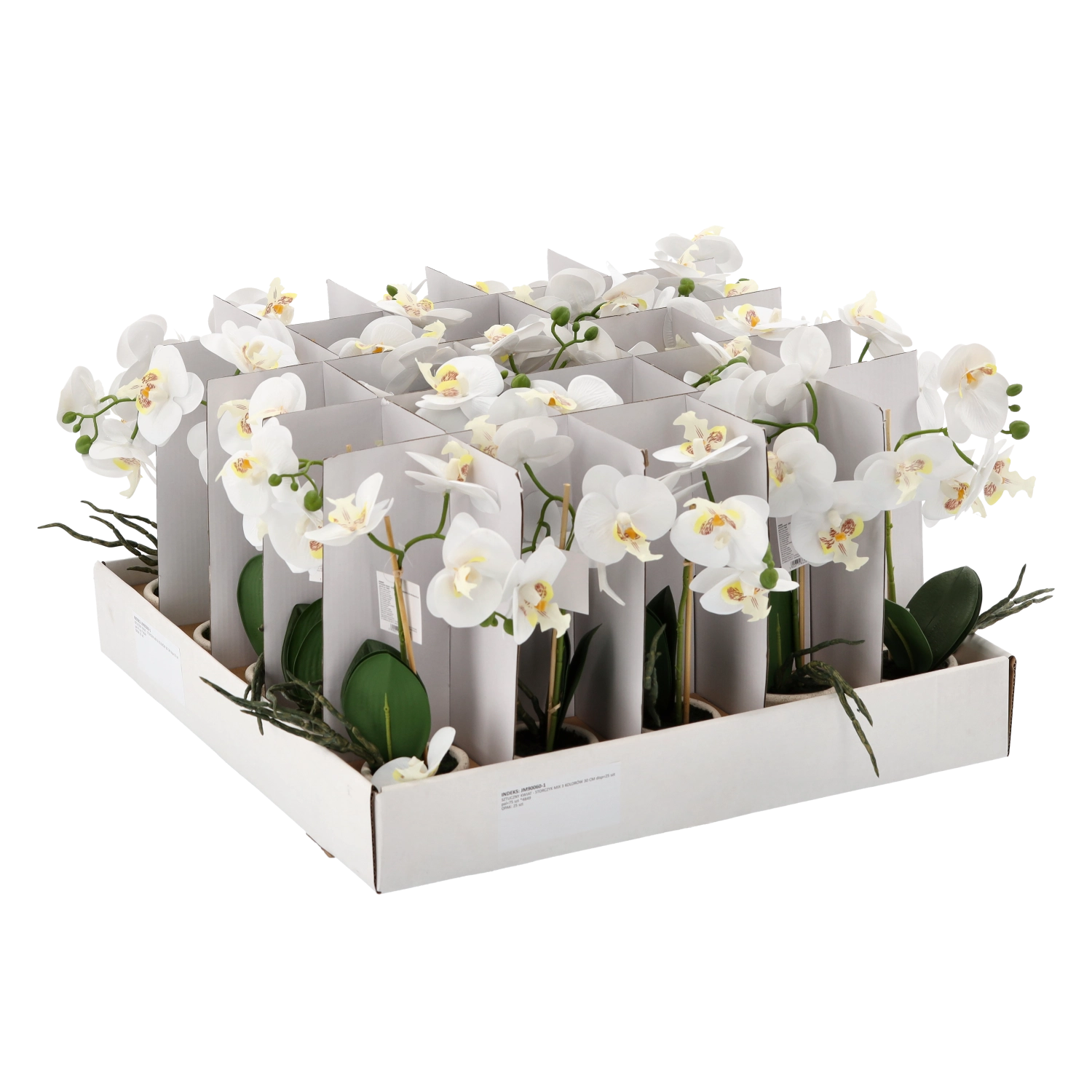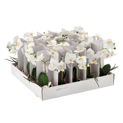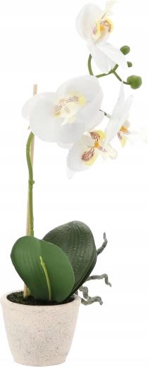 Een elegante kunstmatige orchidee in pot die frisheid en stijl aan je interieur toevoegt zonder onderhoud. Dankzij de realistische bloemen en bladeren oogt hij levensecht, is onderhoudsvrij en klaar om direct op tafel, een plank of vensterbank te plaatsen. Ideaal voor thuis, kantoor en receptie.