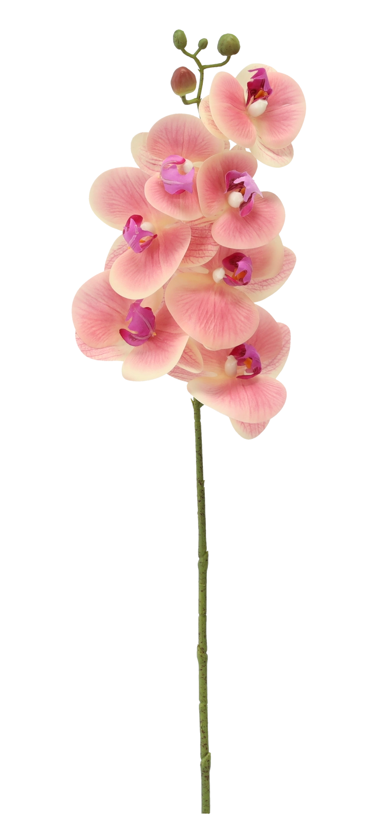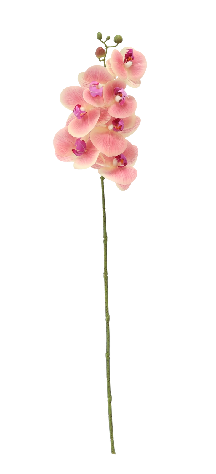 Deze kunstorchidee is de ideale keuze voor wie wil genieten van de schoonheid van bloemen zonder zorgen. Dankzij de realistische bloemblaadjes en natuurgetrouwe kleurverloop oogt ze levensecht en vult ze perfect aan in de woonkamer, slaapkamer, het kantoor en de receptie. De lange, slanke steel past in hoge vazen en moderne arrangementen.