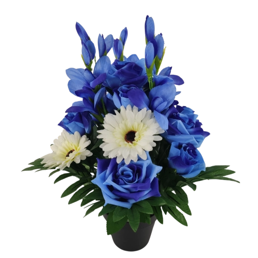 Dit kant-en-klare bloemstuk betovert met een realistische uitstraling, diepe kleuren en een zorgvuldige schikking van de bloemen. Dankzij het compacte formaat past het perfect in de woonkamer, op kantoor, in een winkelruimte of als waardige decoratie op een gedenkplek.