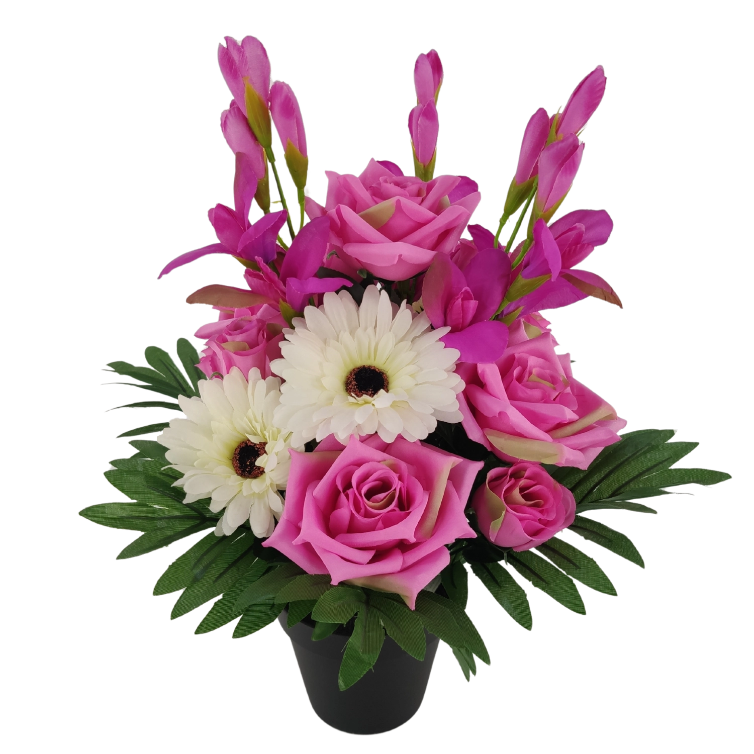 Kunstbloemstuk in bloempot 43 cm, mix kleuren