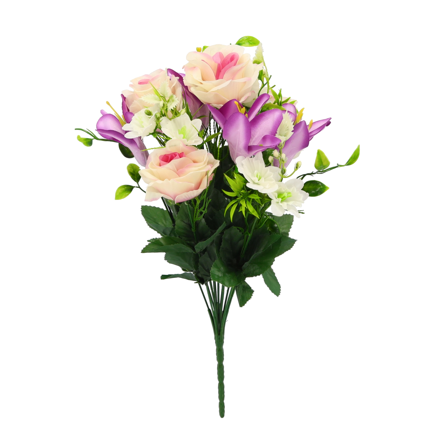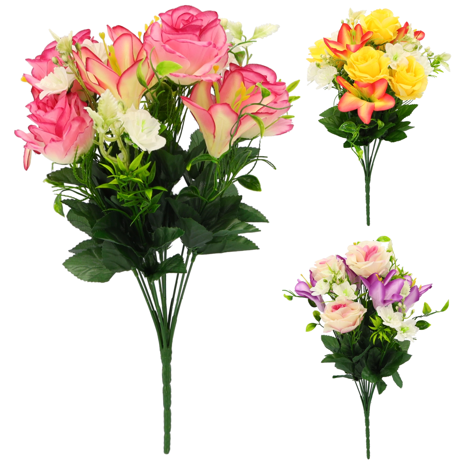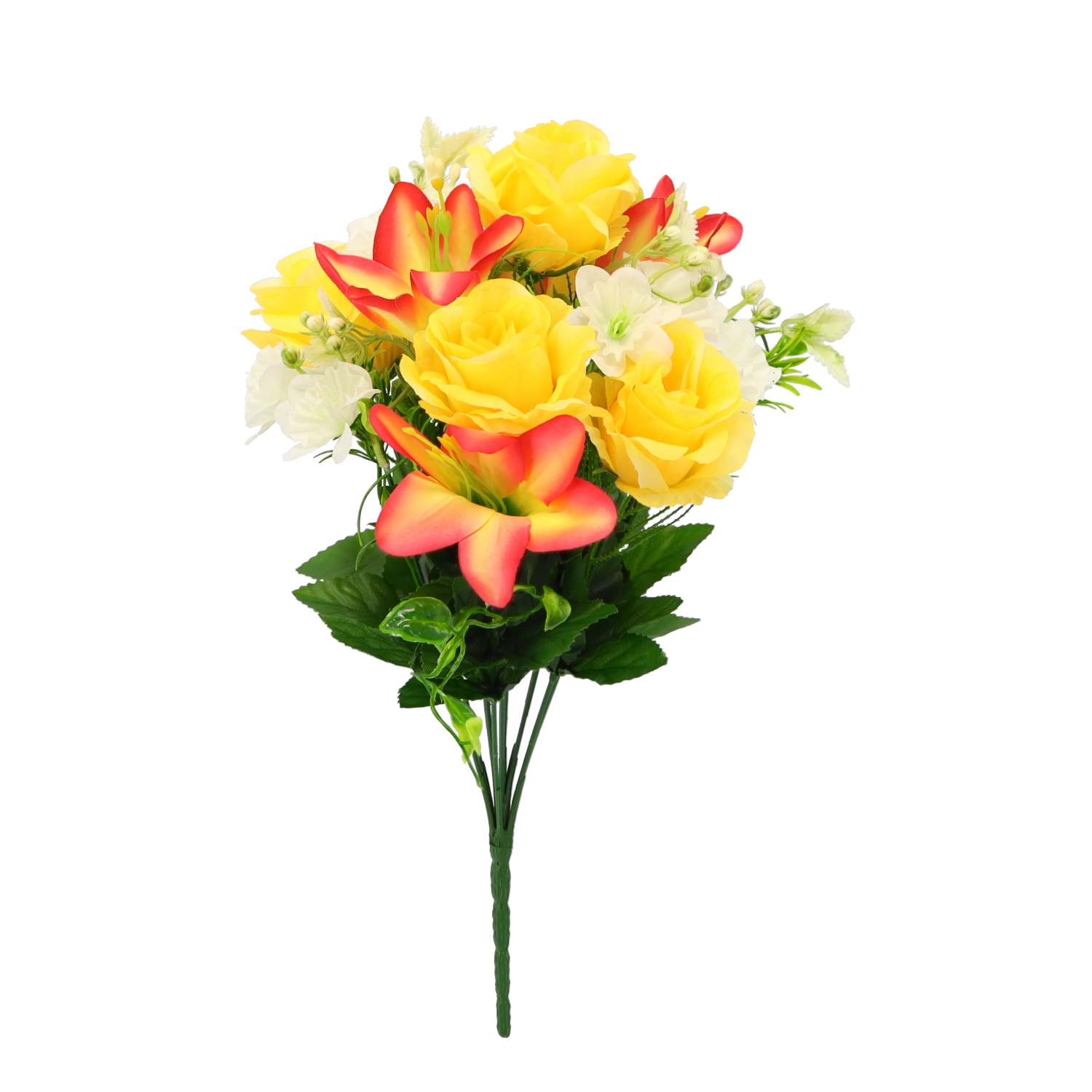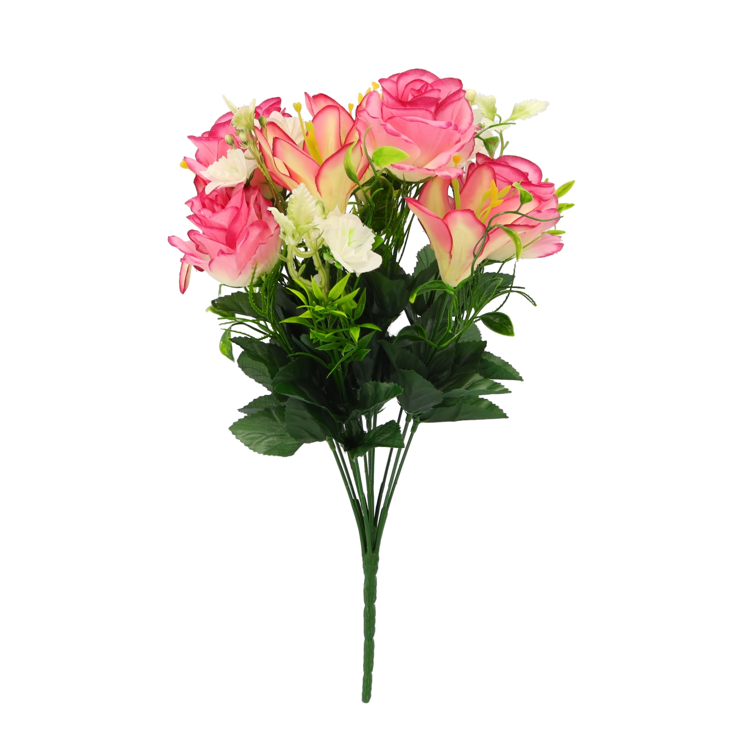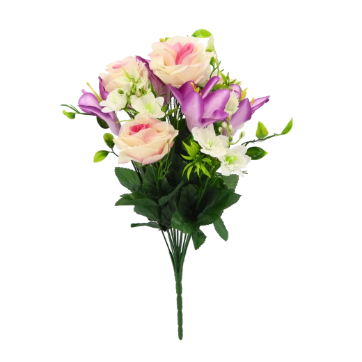 Breng tijdloze bloemenpracht in je interieur zonder gedoe. Dit kunstboeket met rozen en lelies biedt levensechte bloembladen en bladeren, een stabiele vorm en een lange levensduur. Dankzij de mix van kleurvarianten stem je het boeket moeiteloos af op zowel moderne als klassieke arrangementen.