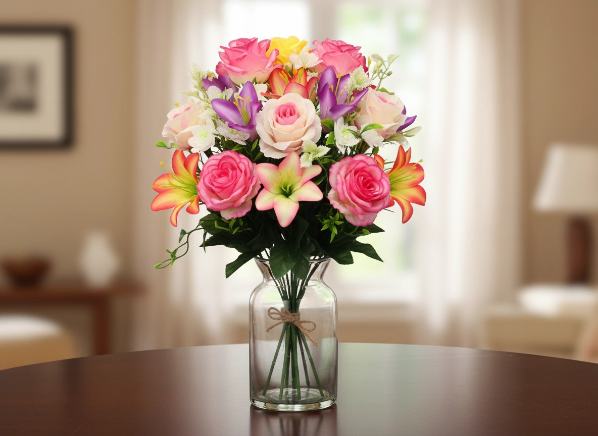 Kunstboeket rozen en lelies, mix kleuren, 43 × 25 × 25 cm