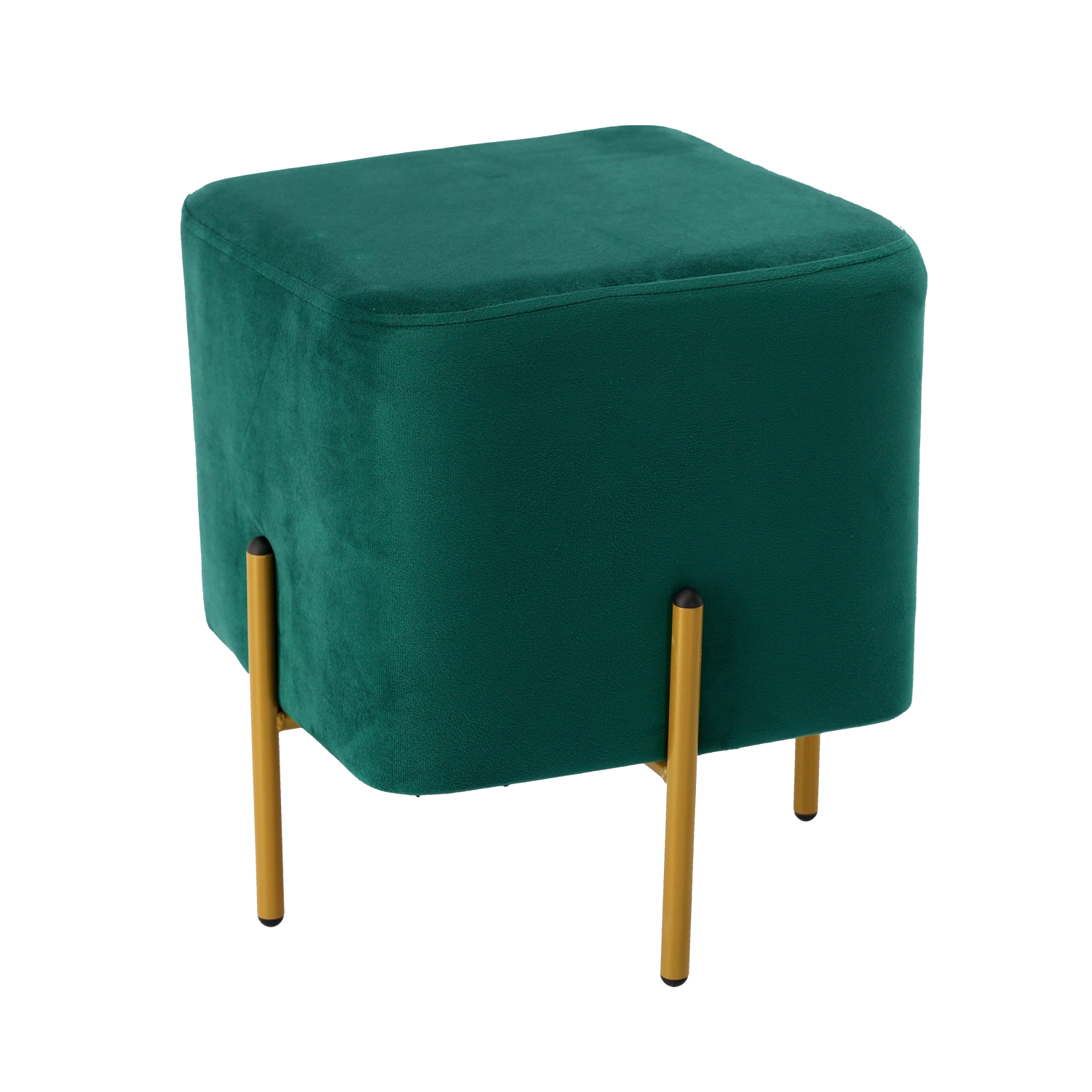Vierkante fluwelen poef op metalen poten, donkergroen 35 × 35 × 40 cm
