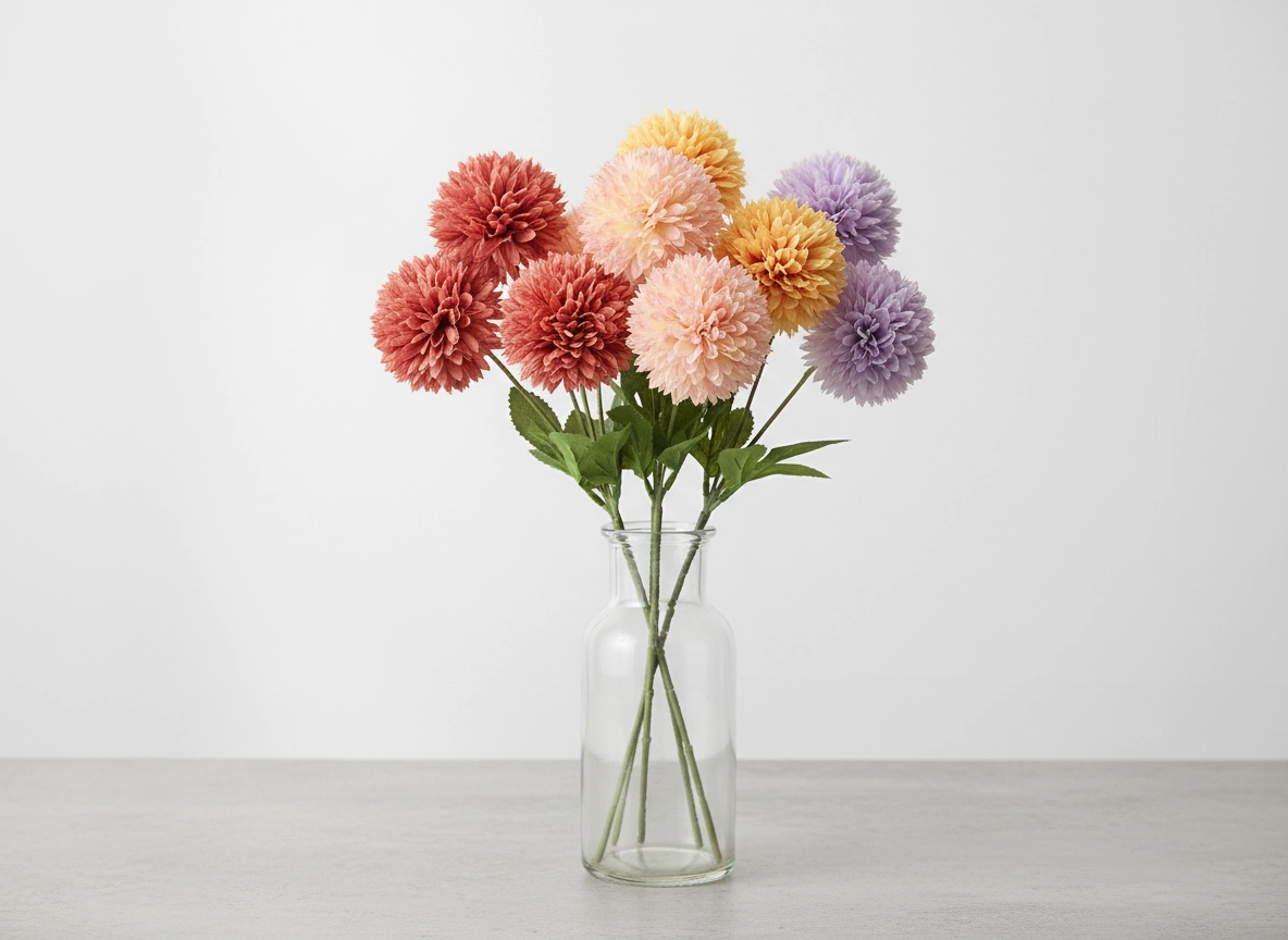 Breng frisheid en kleur in je interieur met een kunsttak met dahlia’s die eruitziet als echt en geen verzorging vereist. Een mix van tinten roze, perzik, geel en paars laat zich gemakkelijk combineren met uiteenlopende woonstijlen – van modern tot klassiek.