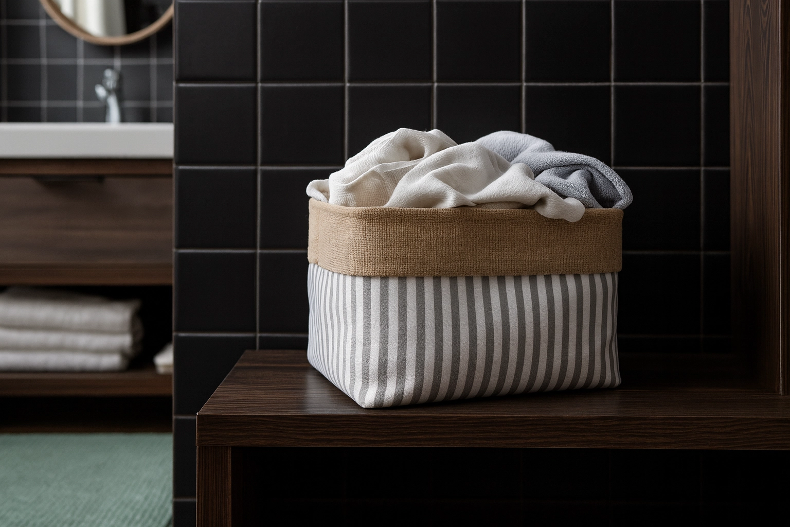Deze rechthoekige textiele organizer is ontworpen om functionaliteit en een moderne uitstraling te combineren. De universele afmetingen 25 × 35 × 22 cm passen perfect in kasten, op dressoirs en in badkamers. Verstevigde randen behouden de vorm, terwijl de zachte textiele wanden zorgen voor comfortabele hantering en eventueel plat opbergen wanneer niet in gebruik.