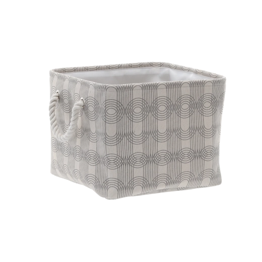 De touwgrepen maken comfortabel dragen mogelijk, of de box nu leeg of vol is. Het grijze geometrische patroon en de decoratieve voering geven je ruimte een nette, opgeruimde uitstraling. Ideaal voor de woonkamer, slaapkamer, badkamer, kinderkamer en werkkamer.