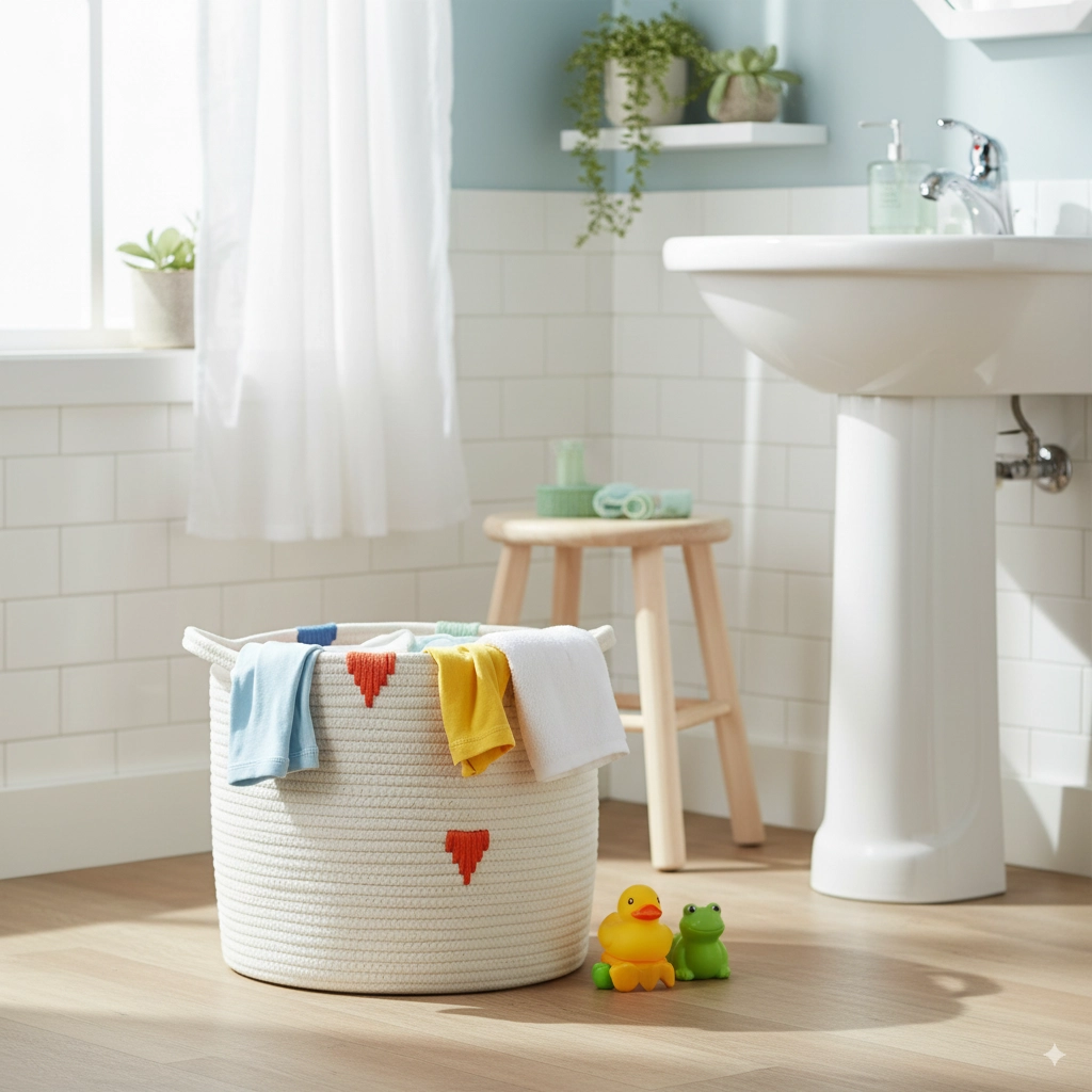 Het formaat 27 × 24 cm past perfect in de badkamer, kinderkamer en hal. Hoge functionaliteit zonder onnodig veel ruimte in te nemen.
