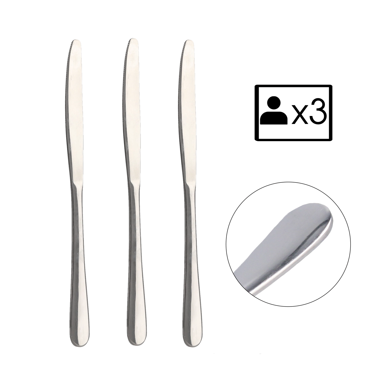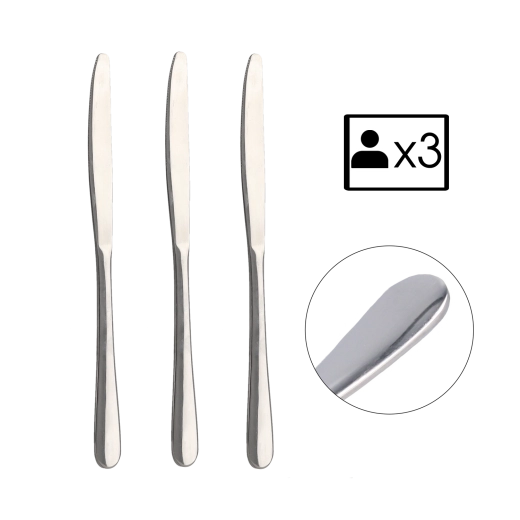 Elegante set van 3 keukenmessen van hoogwaardig roestvrij staal uit de Classic-lijn, die uitblinkt door zijn eenvoud en tijdloos design. De gladde, patroonloze afwerking past perfect bij elke tafel- of keukenuitrusting.