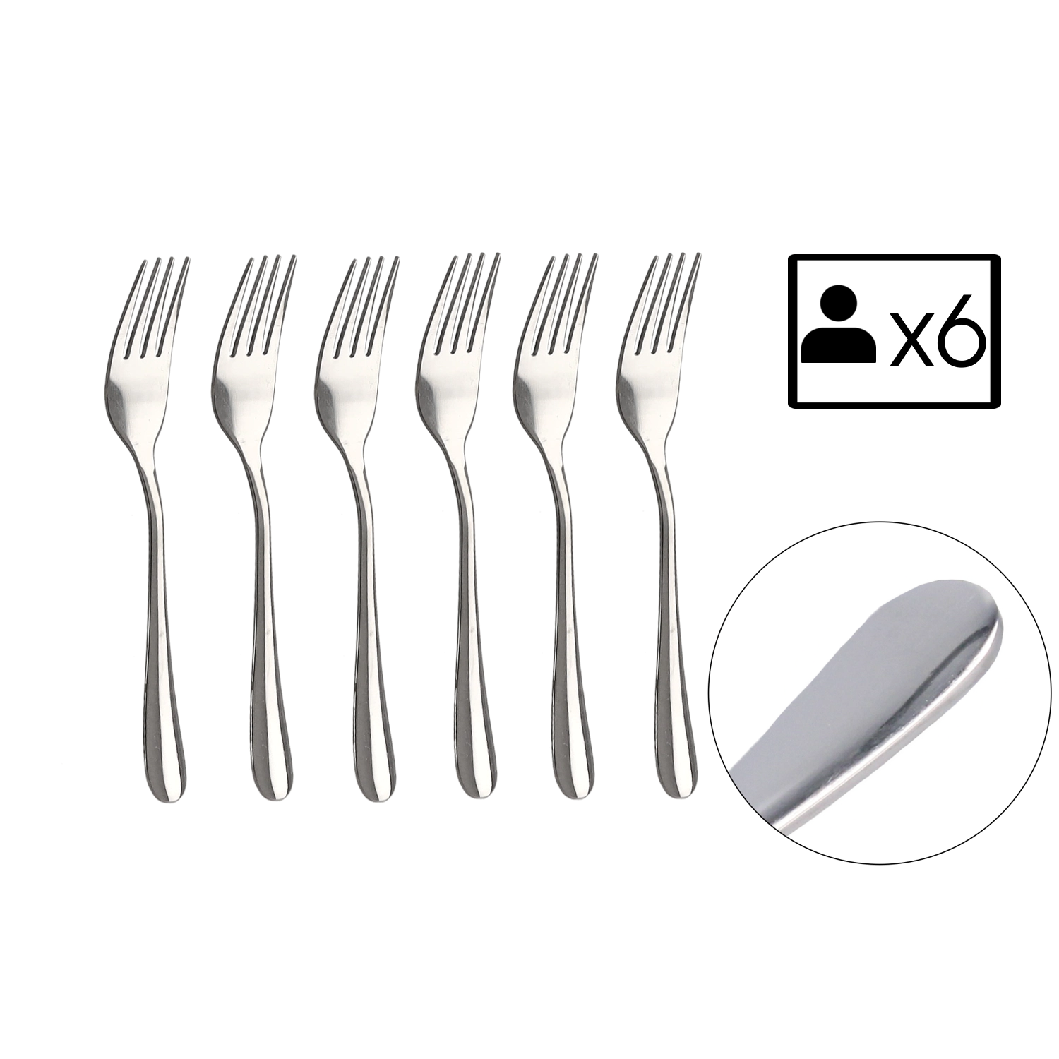 Ontdek de perfecte aanvulling voor het serveren van taarten, cakes en desserts. De set van 6 dessertvorkjes Classic is gemaakt van roestvrij staal van hoge kwaliteit, wat duurzaamheid, hygiëne en een lange levensduur garandeert. De minimalistische, gladde afwerking zonder decor laat zich gemakkelijk combineren met zowel moderne als traditionele keukens.