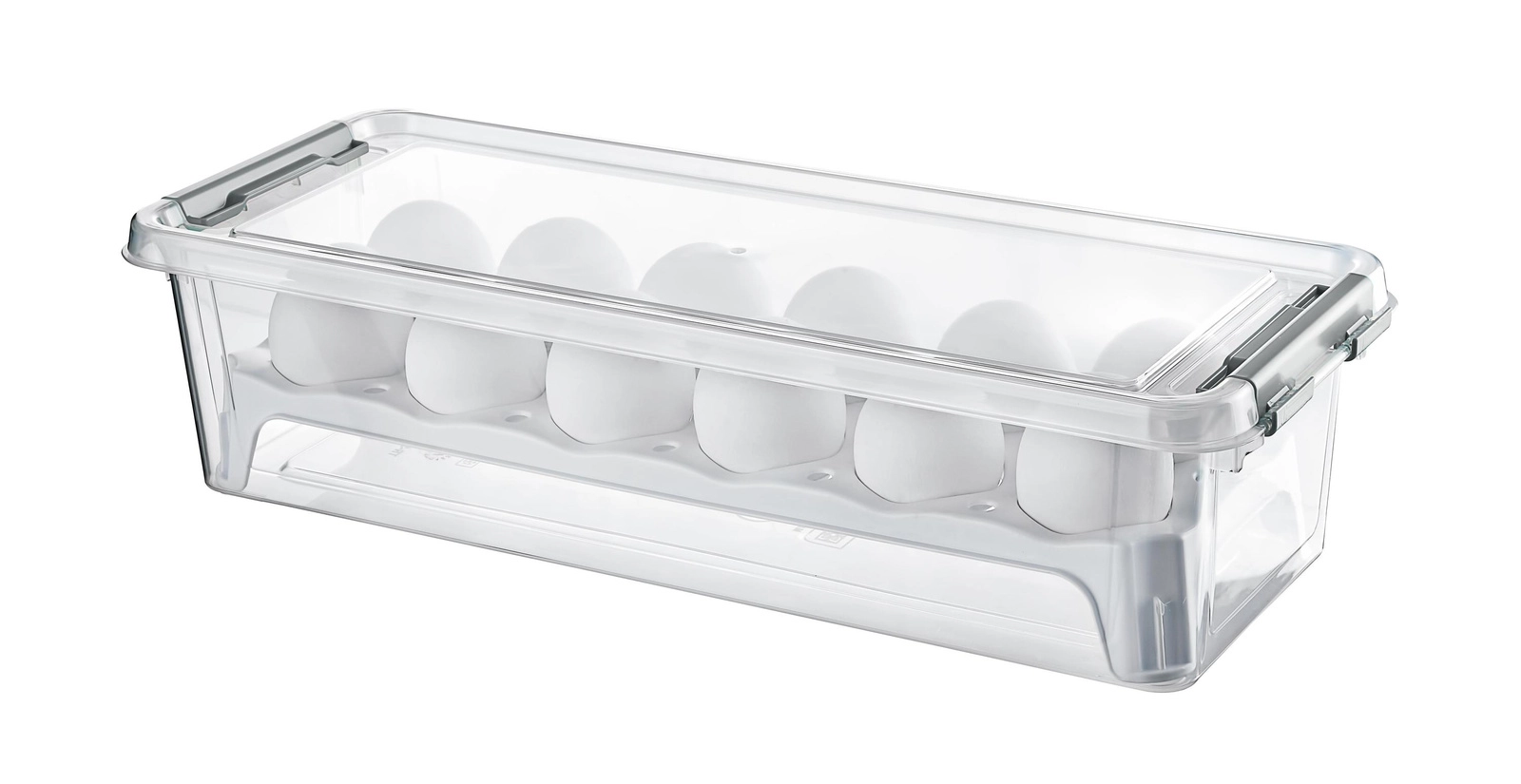 Praktische rechthoekige eierdoos voor maximaal 12 stuks, gemaakt van hoogwaardig kunststof zonder schadelijke BPA. Dankzij het gemakkelijke openen, de duurzame uitvoering en de mogelijkheid tot opslag in koelkast en vriezer is hij ideaal voor dagelijks gebruik en veilig transport van eieren. Vaatwasmachinebestendig.