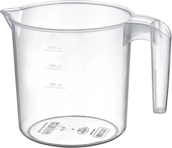 De transparante maatkan van 1 l wordt een betrouwbare hulp bij koken, bakken en serveren. De doorzichtige wanden maken directe controle van het niveau mogelijk, terwijl duidelijke maatstrepen je helpen bij het nauwkeurig doseren van water, melk en andere vloeistoffen. Dankzij de compacte afmetingen past hij gemakkelijk in de kast en in de vaatwasser.