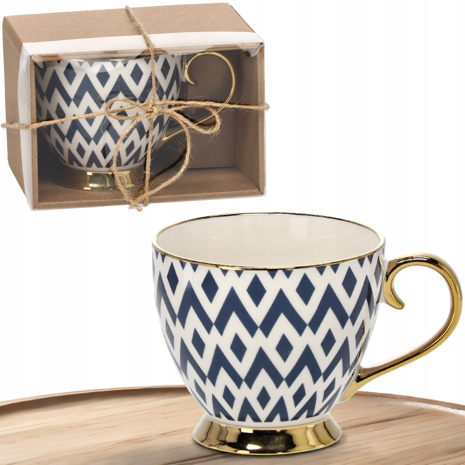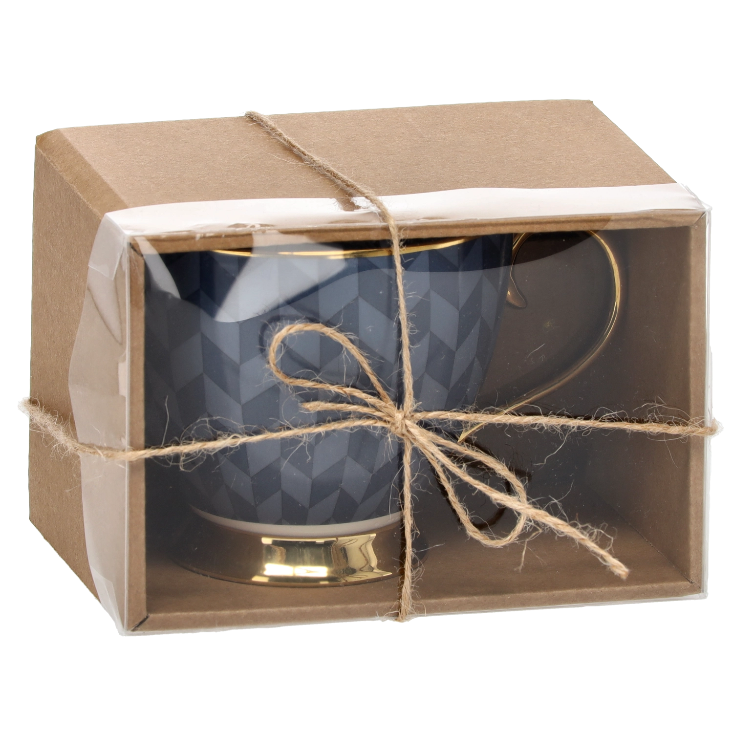 De mok is verpakt in een esthetisch doosje met doorkijkvenster en koord – ideaal als elegant cadeau zonder extra voorbereidingen.