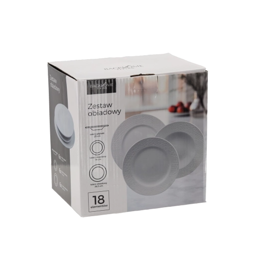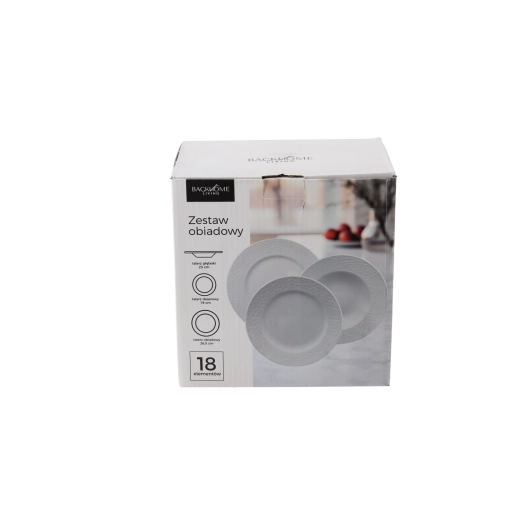 Elegante ronde dinerset van hoogwaardig porselein met 18 delen in tijdloos wit. Perfect voor dagelijks tafelen en voor feestelijke gelegenheden. Bevat borden in drie formaten voor het compleet serveren van hoofdgerechten, soepen en desserts.