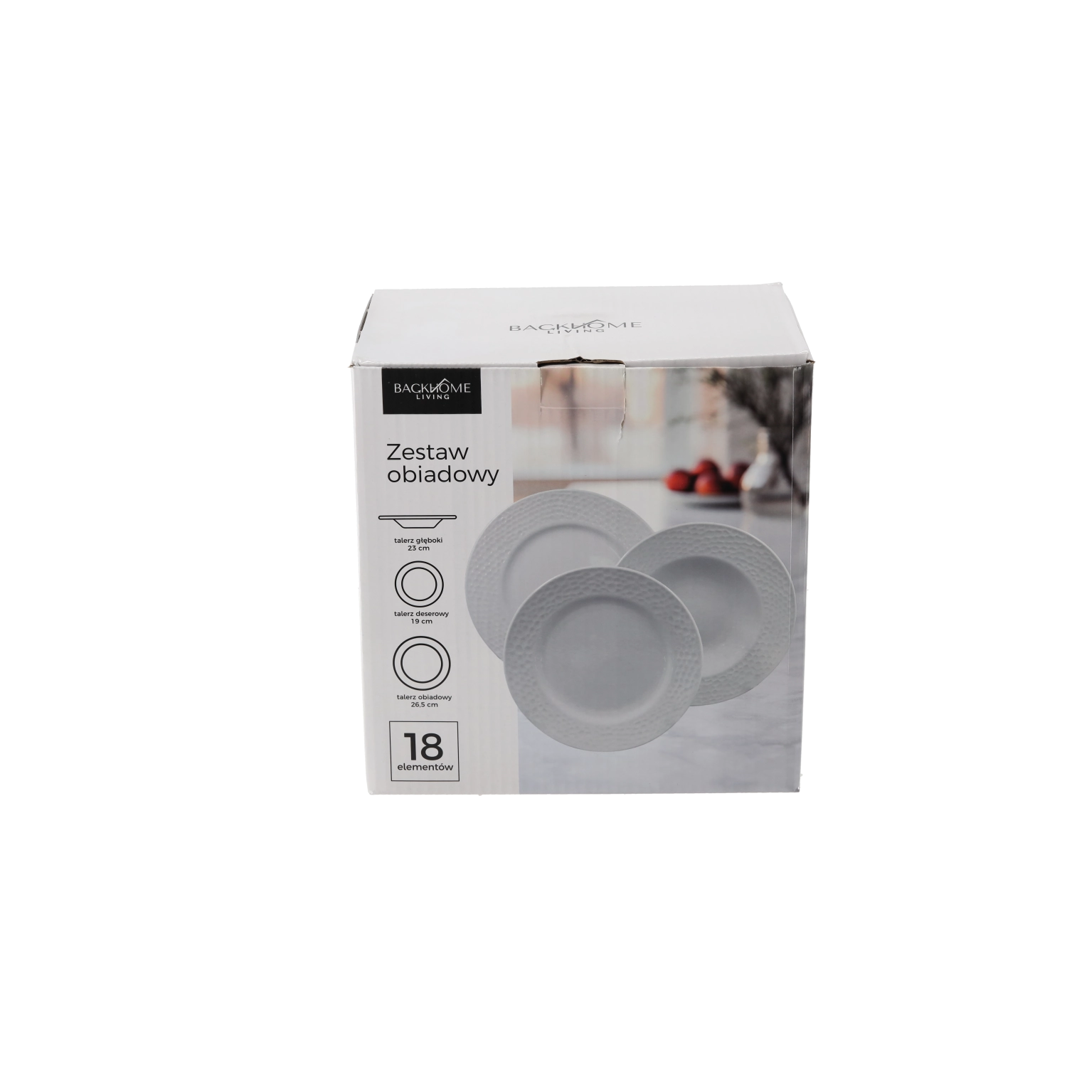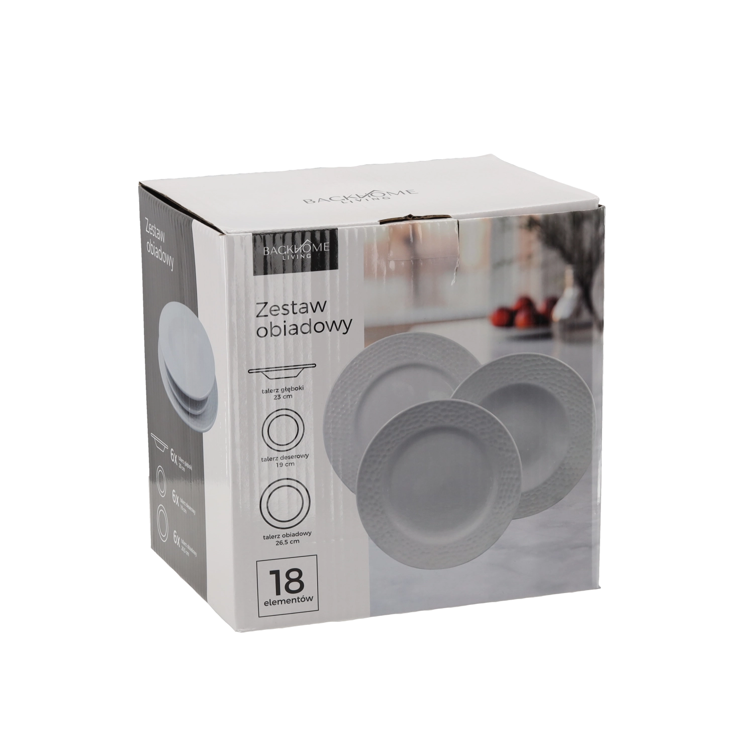 • Complete uitrusting voor 6 personen: 3 soorten borden, elk zes stuks.