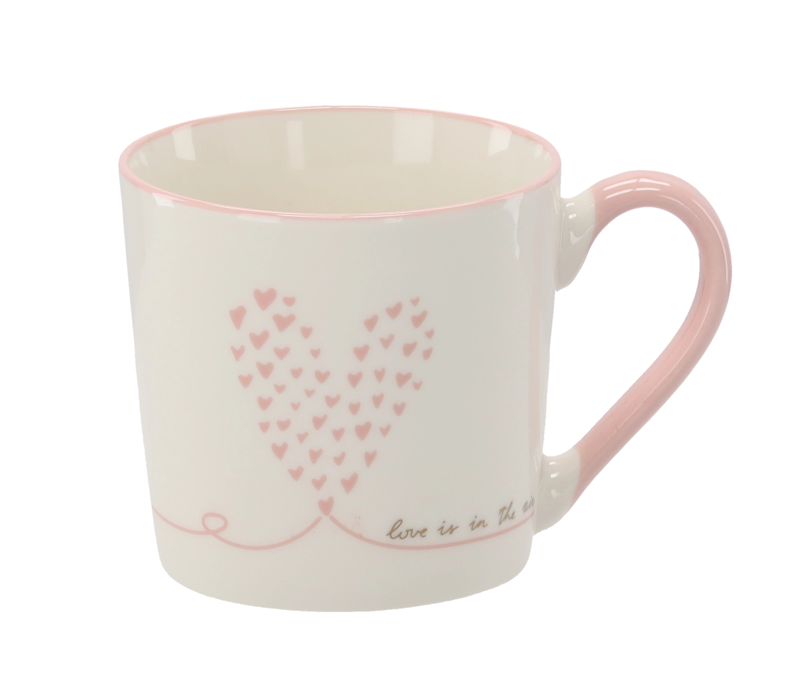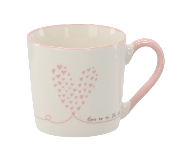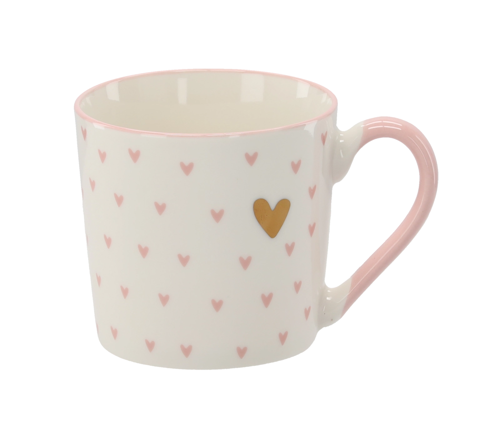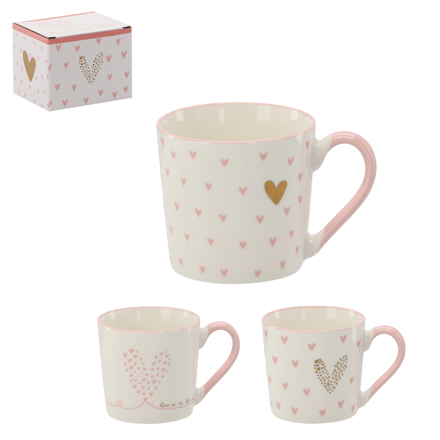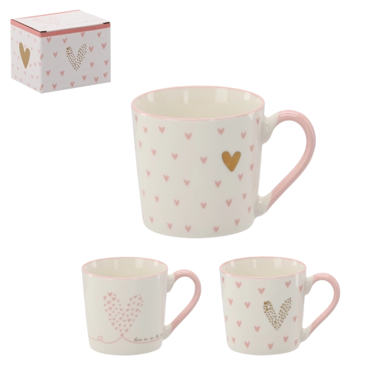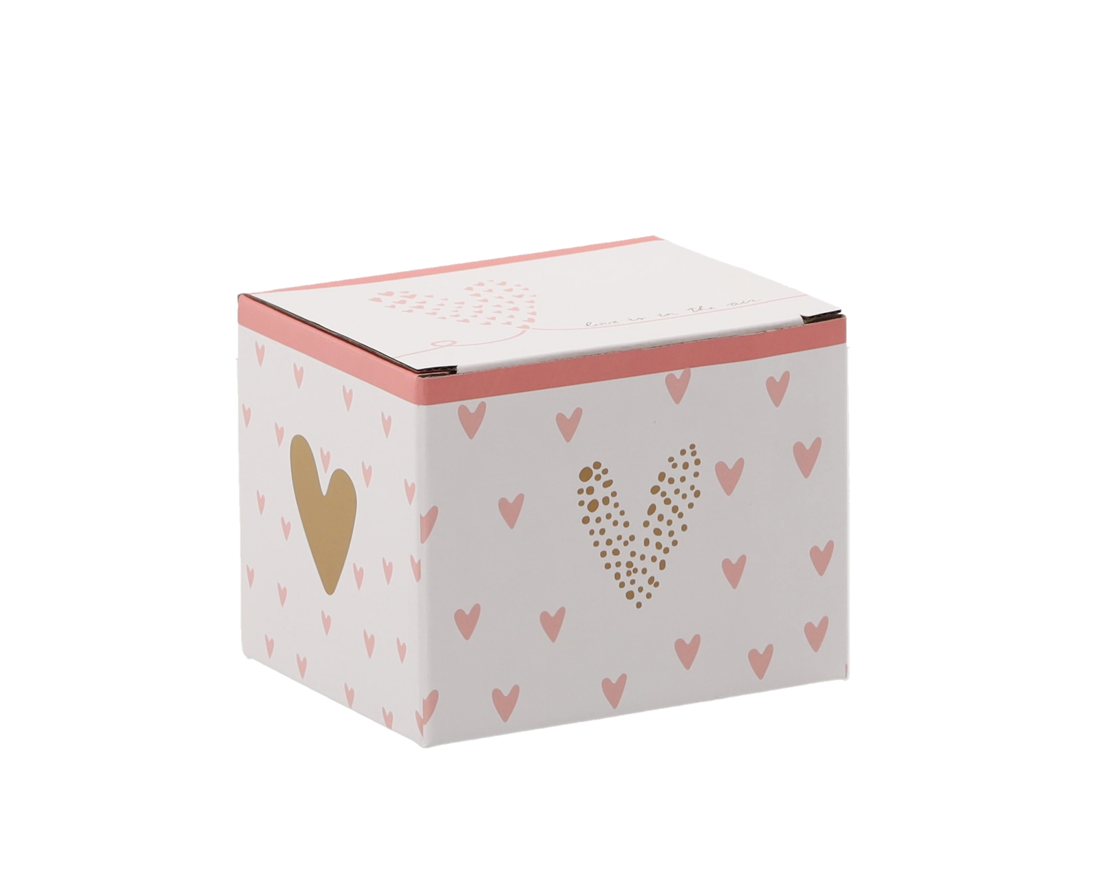Een stijlvolle doos met roze en gouden hartjes maakt van de mok een ideaal cadeau voor elke gelegenheid.