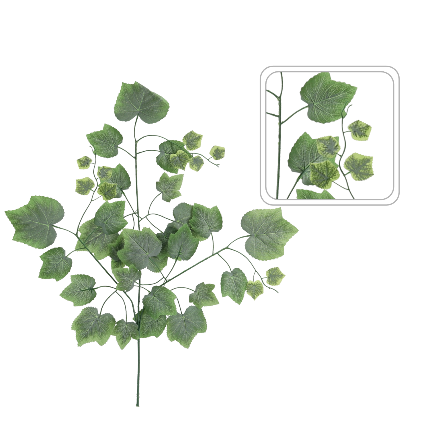 Breng frisheid en een natuurlijke uitstraling in je interieur met een set van 12 kunsttakken met wijnbladeren. Dankzij de realistische afwerking, de intens groene kleur en de flexibele constructie vorm je ze eenvoudig in de gewenste vorm. Het materiaal geeft niet af bij contact met water, waardoor ze ideaal zijn voor arrangementen, slingers, kransen en tafeldecoraties.