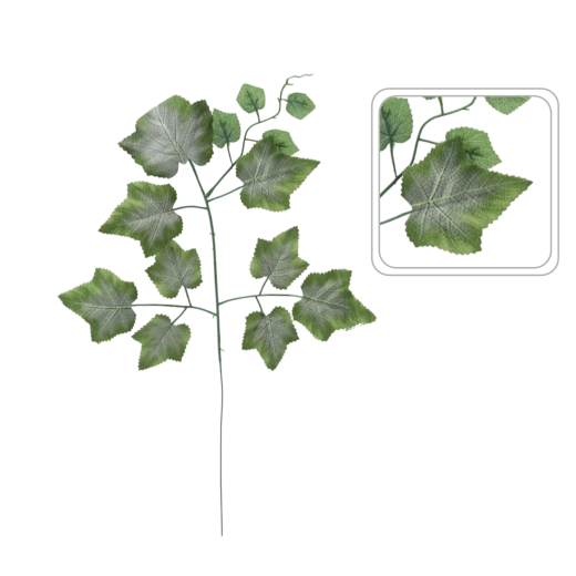 Geef je interieur een natuurlijke uitstraling zonder water geven of bladval. De realistisch uitgewerkte wijnbladeren in een diepe groentint ogen fris in elk seizoen en laten zich eenvoudig combineren met zowel verse als kunstbloemen. Dankzij de flexibele stengel buig, draai of fixeer je de takjes precies zoals jouw arrangement vereist.