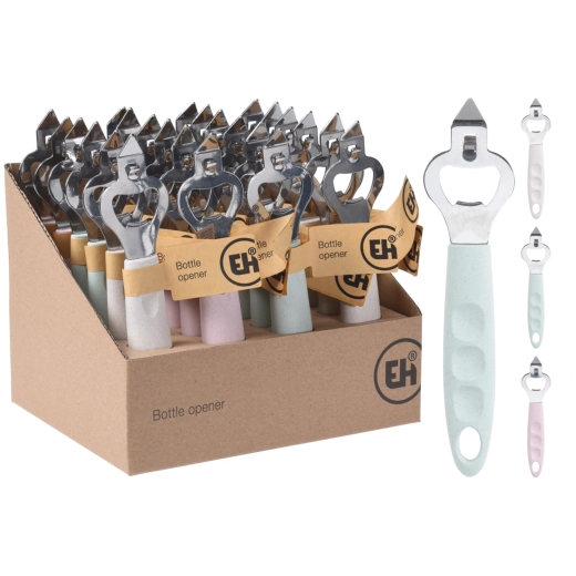 Deze universele flesopener is ontworpen om kroonkurken snel en moeiteloos te openen. De robuuste constructie van roestvrij staal zorgt voor een lange levensduur en betrouwbaarheid, terwijl de elegante zilverkleurige afwerking perfect past in elke keuken of thuisbar.