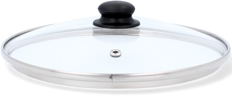 Universeel glazen deksel met een diameter van 28 cm, gemaakt van hoogwaardig hittebestendig glas. Biedt bestendigheid tegen hoge temperaturen, een stoomventiel voor het afvoeren van stoom, een comfortabele kunststof knop en een roestvrijstalen binnenrand die voorkomt dat condens langs de pan afloopt.