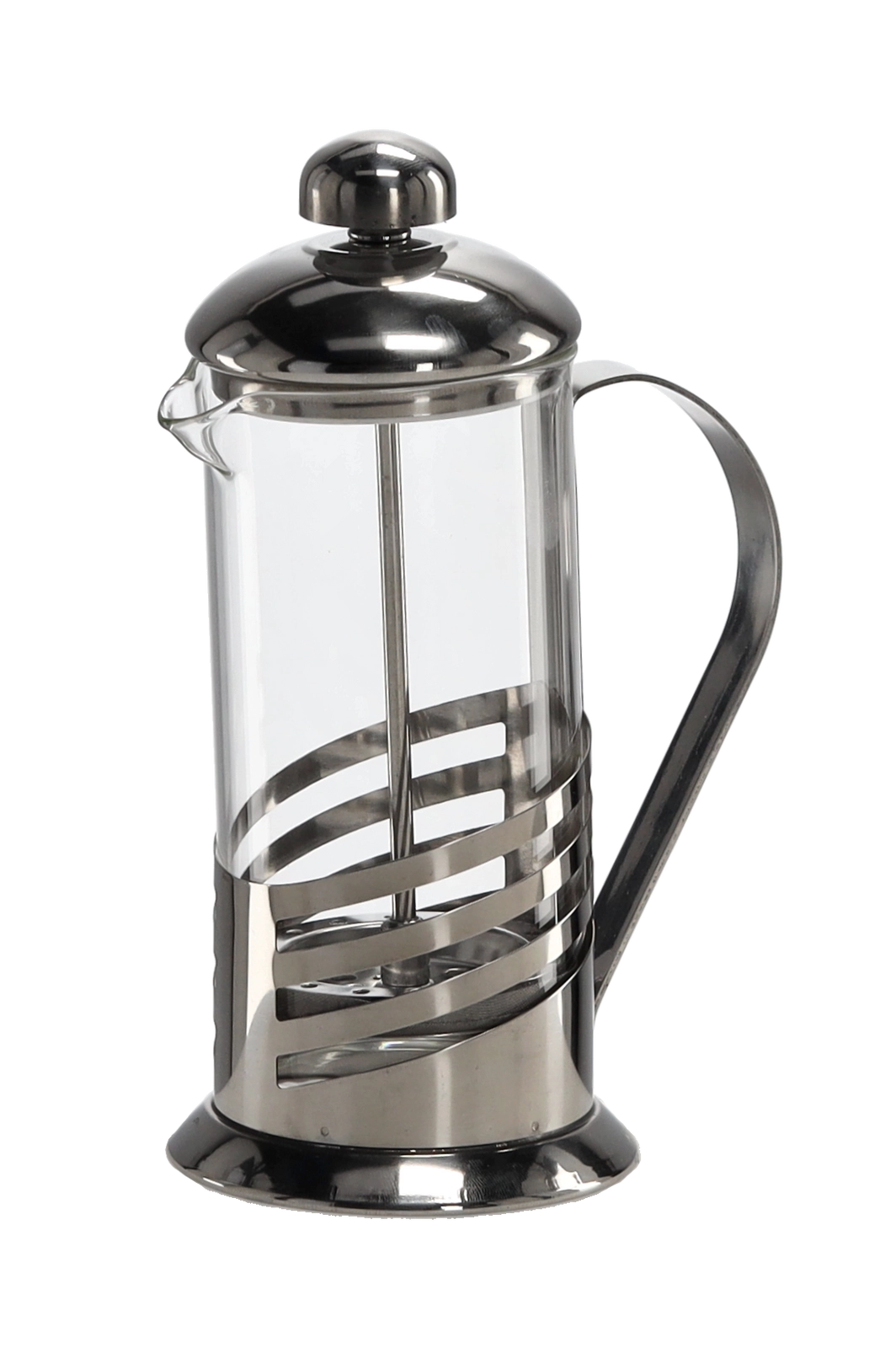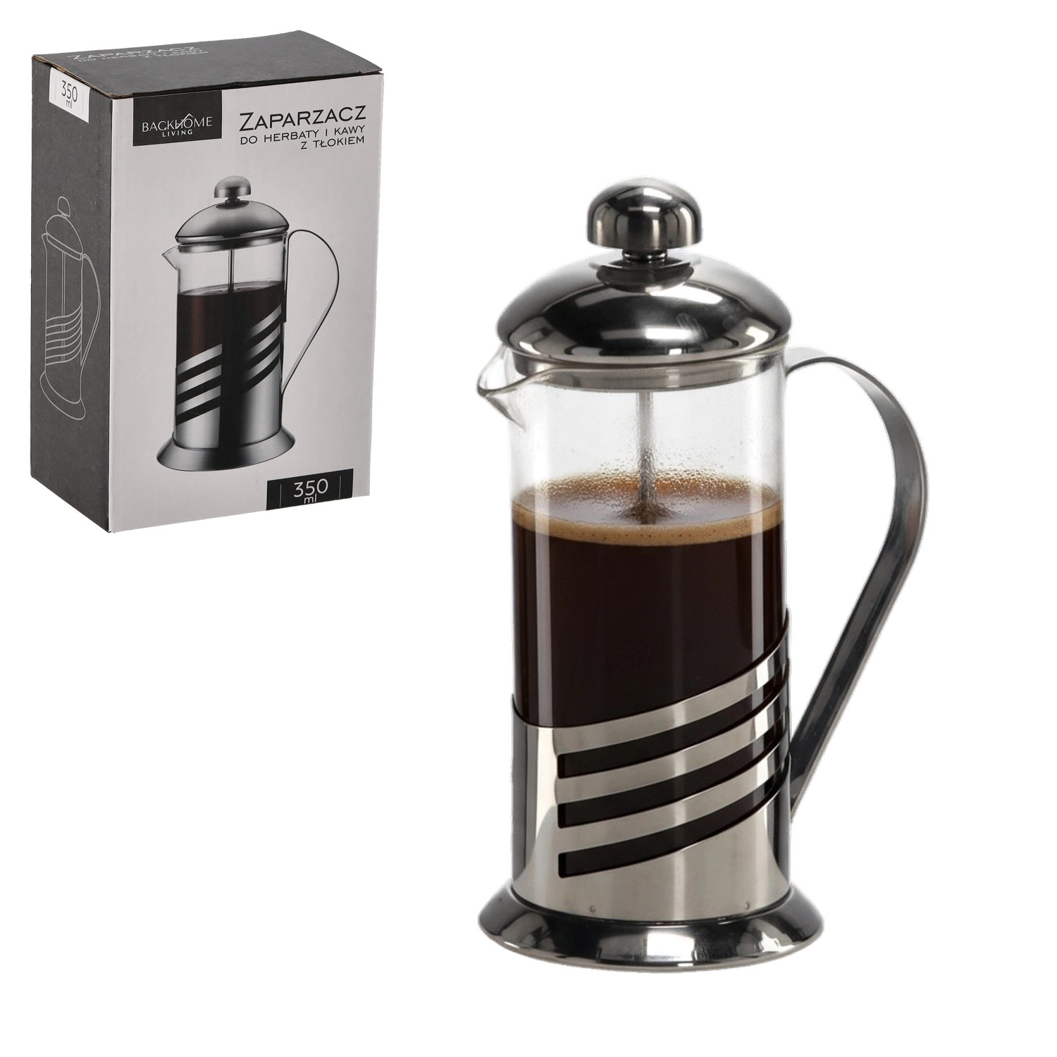 Elegante french press met een inhoud van 350 ml, die duurzaam borosilicaatglas combineert met roestvrij staal voor een lange levensduur en veilig gebruik bij hoge temperaturen. Het precisie-zuigmechanisme met een fijn filter zorgt voor een heldere drank zonder bezinksel en een volle smaak. Dankzij de ergonomische handgreep en de nauwkeurige schenktuit schenk je zonder morsen. Ook geschikt voor het opschuimen van melk voor cappuccino of latte en kan in de vaatwasser worden gereinigd.