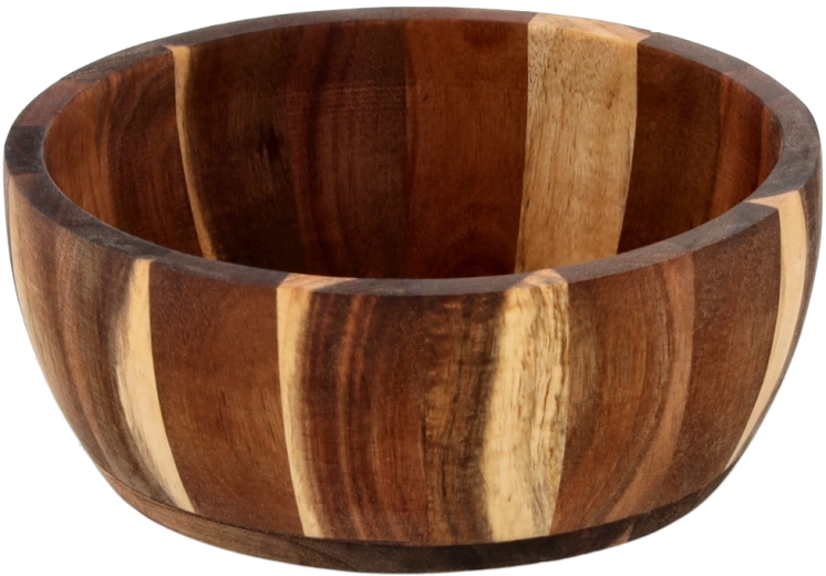 Acaciahout staat bekend om zijn hardheid en lange levensduur. Om het gladde oppervlak en de diepe kleur te behouden, raden we regelmatige behandeling met eetbare olie aan. De kom is niet geschikt voor de vaatwasser – geef de voorkeur aan handwas en zorgvuldig drogen, zodat hij zijn natuurlijke uitstraling behoudt.