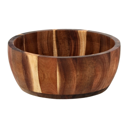 Elegante kom van acaciahout met een diameter van 20 cm, een stijlvolle en praktische aanvulling voor elke keuken. Dankzij de natuurlijke houtnerf en de sterkte van acaciahout komt hij prachtig tot zijn recht bij het serveren van salades, snacks en kleine hapjes. Eenvoudig te onderhouden: met de hand afwassen en af en toe behandelen met eetbare olie voor blijvende schoonheid.