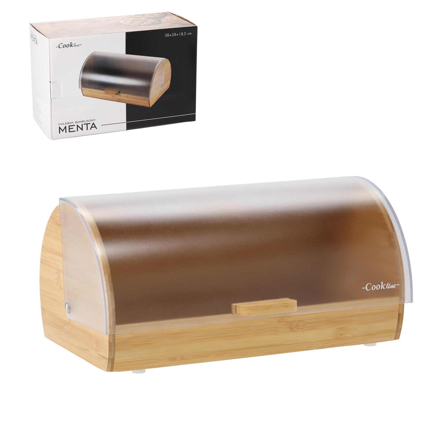 Elegante broodtrommel MENTA van hoogwaardige bamboe met een halftransparant rolluikdeksel dat brood en gebak langer vers houdt, beschermd tegen stof en uitdroging. Het royale volume biedt plaats aan een heel brood, broodjes en gebak, terwijl de ergonomische greep zorgt voor comfortabel openen. Het tijdloze moderne design past perfect in elke keuken.