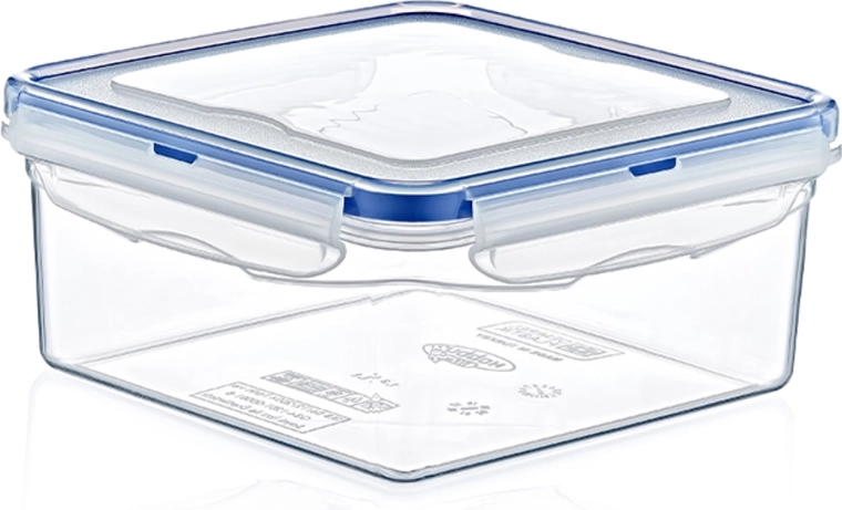 Praktische container met een inhoud van 1,3 l voor dagelijks bewaren van voedsel. Dankzij de vierkante vorm en afmetingen 17 × 17 × 8 cm past hij gemakkelijk in koelkast en vriezer. De transparante wanden maken snelle controle van de inhoud mogelijk, terwijl vier stevige clips en een siliconen afdichting zorgen voor een hermetische afsluiting en langere versheid. Bestand tegen temperaturen van -25 °C tot +95 °C, dus geschikt voor in de vriezer, magnetron en vaatwasser.