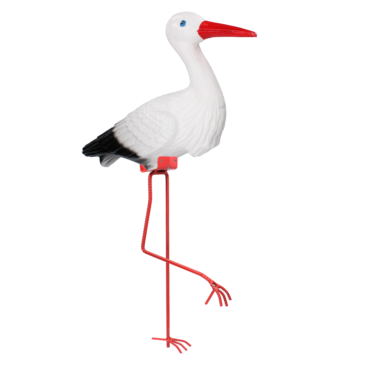 Decoratieve ooievaarfiguur van duurzaam plastic op een stevige draadstandaard geeft je huis of tuin een natuurlijke charme en een elegante uitstraling. De realistische afwerking, weerbestendigheid en eenvoudige plaatsing in een bloempot, op het gazon of in het interieur maken er een praktische en stijlvolle decoratie van.