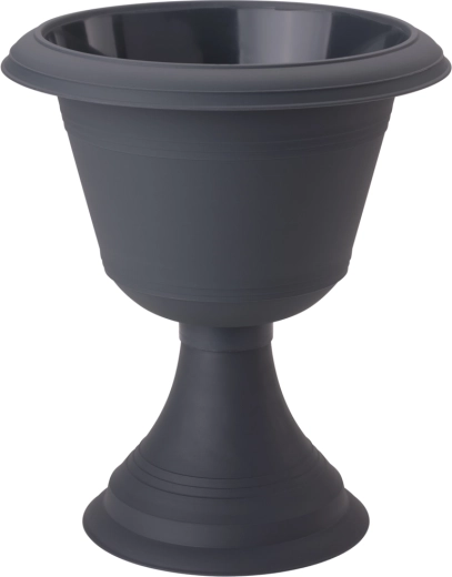 Elegante en duurzame bloempot van hoogwaardige kunststof in moderne antracietkleur, bestaande uit twee delen – de kom en een afneembare voet. Dankzij het eenvoudige, gladde design past hij perfect in zowel interieur als exterieur: thuis, op terrassen, balkons, in tuinen of op begraafplaatsen. Hij is licht, eenvoudig te reinigen en maakt het gebruik van drainage mogelijk voor een gezondere plantengroei.