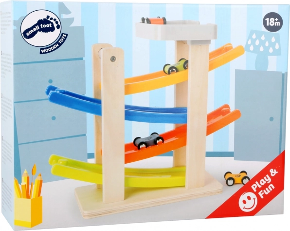 Deze fascinerende klip klap baan is gemaakt van een mix van hout en plastic, wat zorgt voor een lange levensduur en probleemloos gebruik. Met de vier kleurrijke hellingen kunnen kinderen kijken hoe de autootjes naar beneden racen met geweldige sprongen en draaien. Ideaal voor kinderen vanaf 18 maanden die graag spelen en hun motorische vaardigheden ontwikkelen.