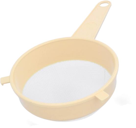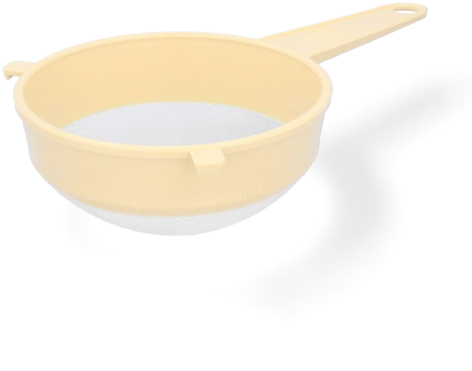 Praktische kunststof keukenzeef met een diameter van 16 cm, ideaal voor dagelijks gebruik – perfect voor het afgieten van fruit en groenten, het zeven van bloem en het afgieten van pasta. Dankzij de lichte constructie en ergonomische handgrepen is hij eenvoudig te hanteren, terwijl het duurzame kunststof zorgt voor een lange levensduur en makkelijk onderhoud in de vaatwasser.