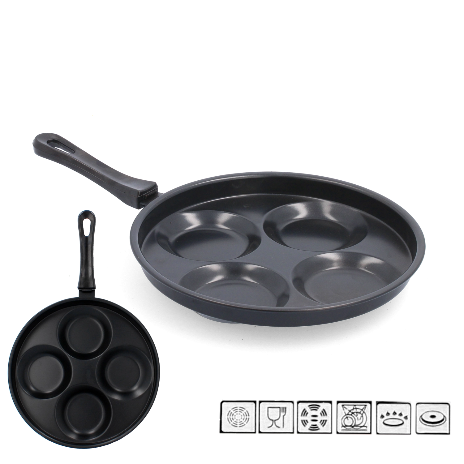 Praktische eierpan met een diameter van 24 cm van duurzaam koolstofstaal met een antiaanbaklaag voor eenvoudig bakken zonder aanbranden. De ergonomische kunststof handgreep zorgt voor een comfortabele en veilige grip, terwijl het hittebestendige buitenoppervlak de duurzaamheid bij dagelijks gebruik verhoogt.